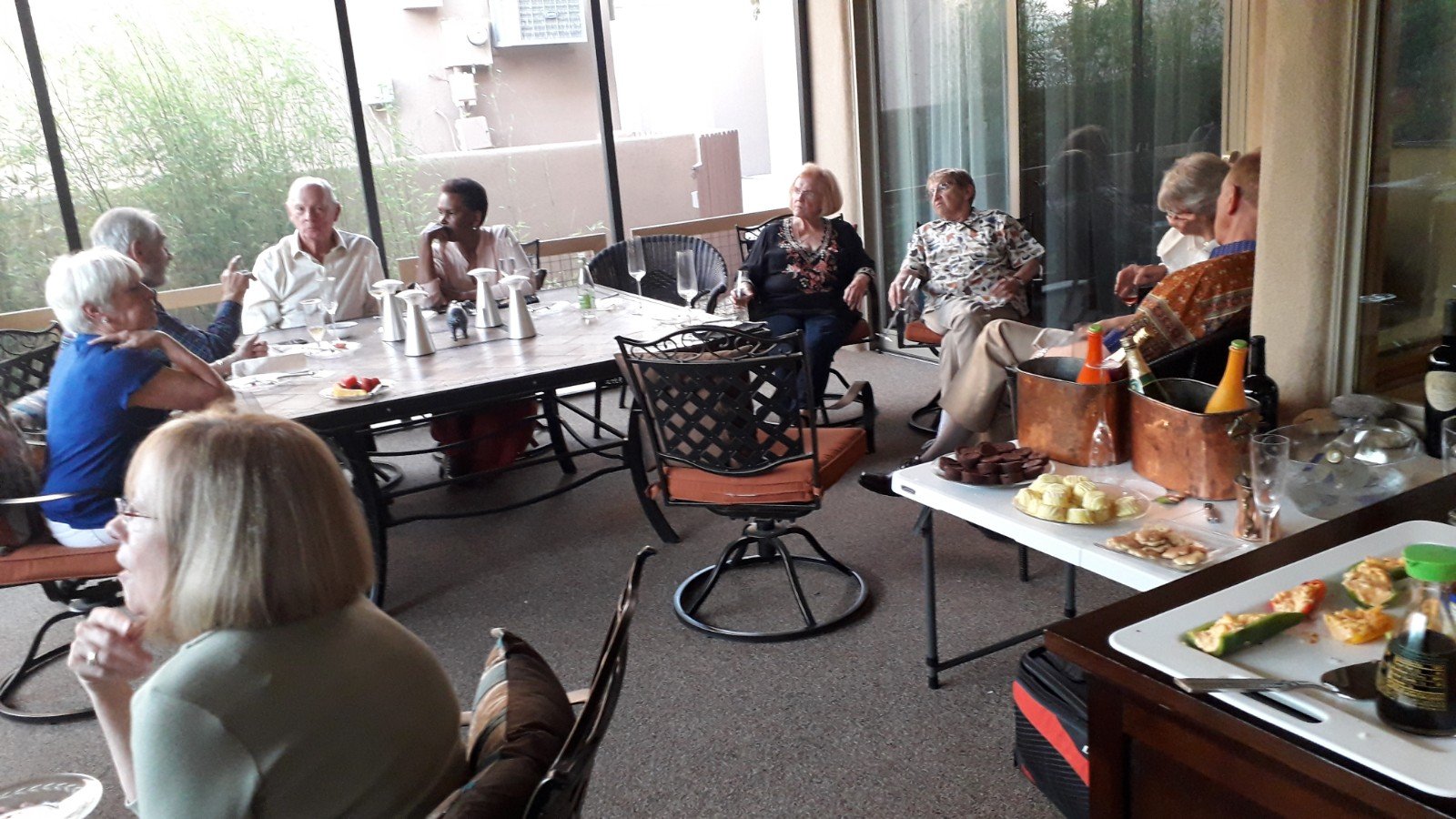 Ich hatte nicht nur das Glück, dass mich Peggy wieder zu sich nach Santa Fe einlud, sondern sie holte mich auch noch zusammen mit zwei Freundinnen in Ghost Ranch ab. Wo sie mit uns dann auch noch einen Road Trip zu einem Kloster und das Georgia O’Keeffe Museum besucht hat. Zurück in ihrem Haus würde ich dann mit Fussbädern, entspannten Morgen mit Kaffee auf ihrer Veranda und Trips ins Zentrum von Santa Fe verwöhnt. Am meisten habe ich aber unsere Unterhaltungen genossen. Peggy, die in New Mexico geboren wurde, aber auch in Ländern wie der Türkei, Jordanien, Afghanistan und Liberia gearbeitet hat, teilte mit mir ihre Leidenschaft für ihre Heimat und Herkunft und brachte mir viel über New Mexico bei. Und obwohl wir nie zusammen in Liberia gearbeitet haben, wir aber beide da und in anderen teils ähnlichen Ländern gelebt und gearbeitet haben, war es inspirierend unsere Geschichten auszutauschen und von ihren Erfahrungen zu lernen. Ich wollte sie eigentlich nur ein paar Tage besuchen, wurde dann aber von ihr eingeladen länger zu bleiben, da sie eine Champagner Party für ihre Freunde geplant hatte. Was ich natürlich gerne annahm. Es war leider nur ein Abend und ich wünschte, dass ich mehr Zeit mit ihren Freunden hätte verbringen können, da die Gespräche so interessant und fesselnd waren. Die meisten von ihnen waren bereits im Ruhestand, was bedeutete, dass sie eine unglaubliche Lebenserfahrung hatten, als Lehrer, Malerin oder Autor von Kinderbüchern, die die Welt bereist und international gearbeitet und ihre Familien großgezogen hatten. Ich habe viel über die Herausforderungen des amerikanischen Schulsystems wie auch der Politik Ugandas gelernt, Geschichten über die Pinguine in der Antarktis und die Polarbären im Norden von Kanada gehört, Episoden aus ihrem Familienleben genossen und jede Menge Weisheiten aus den Lehren ihres Lebens gezogen. Was mich darin ermutigte meine Reise fortzusetzen!