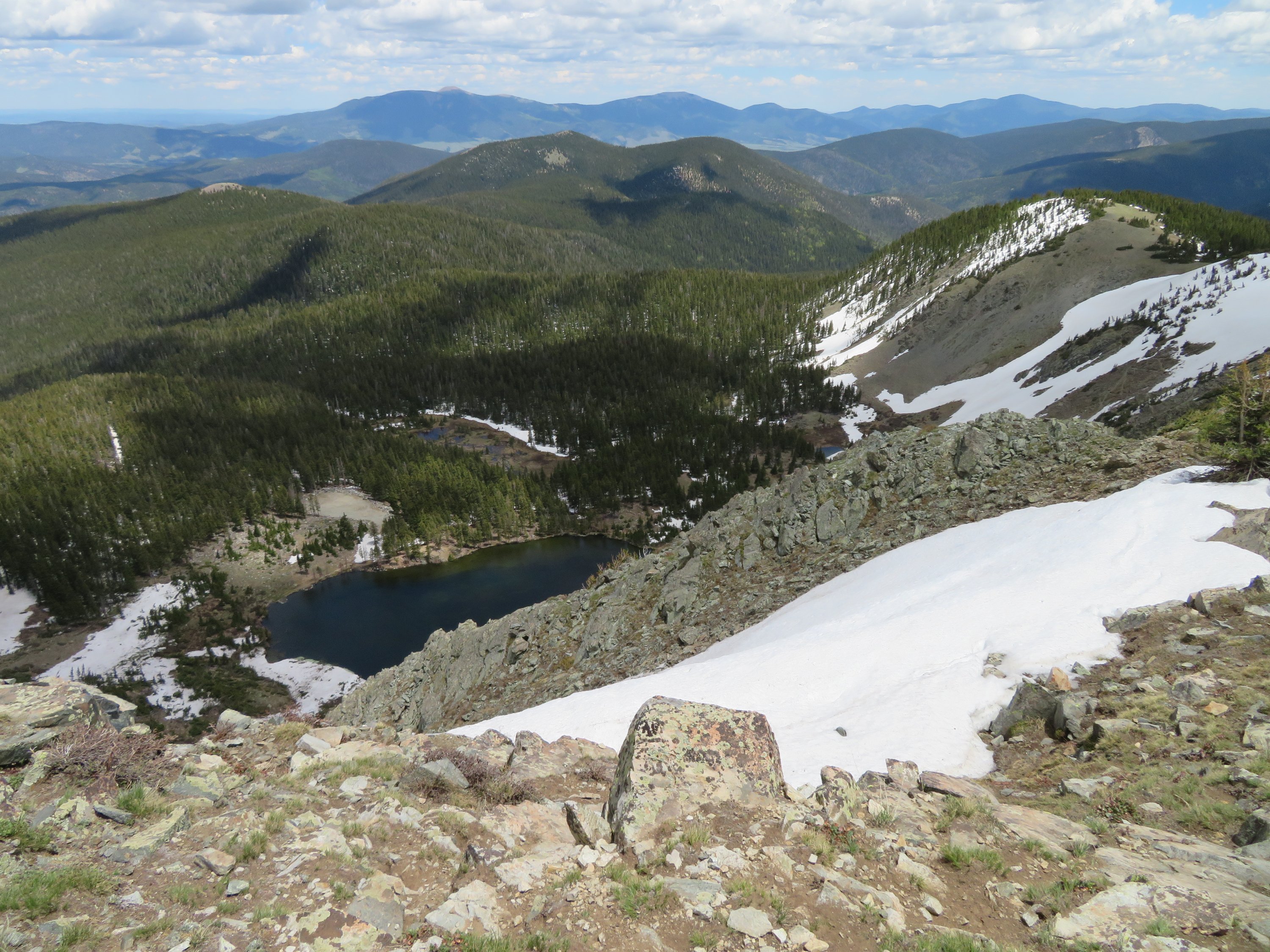 Vier Tage Abenteuer in den Bergen nördlich von Taos in der Columbine Hondo Wilderness: Gewitter und Hagel vermeidend, schnaufend und pustend mit Schneckengeschwindigkeit durch Schneefelder den Berg hinauf stapfend, als würde ich mich wie verrückt auf dem Stepper abkämpfen wenn ich mit all dem Gewicht bis zu den Knien eingesunken war… Aber als ich endlich den Gipfel erreicht hatte, wurde ich mit der fantastischsten Rundumaussicht belohnt! Blick auf den Wheeler Peak und sogar bis auf die schneebedeckten Berge in Colorado! Wo ich zum Glück genau deswegen nicht war. Und mich stattdessen entschlossen hatte in dieser Wildnis zu wandern. Auf dem Gipfel wehte es wie verrückt. Aber ich konnte nicht anders als eine Weile die Aussicht zu genießen. Als ich dann wieder auf dem Weg nach unten war, bin ich fast wieder in Schneefelder gelaufen. Und habe daher spontan beschlossen in ein anderes Tal abzusteigen. Das von oben total einladend aussah mit einem Fluss, der sich durch eine offene Grasslandschaft schlängelte geschützt durch einen jungen, unglaublich grünen Wald. Das hieß, dass ich einen wahnsinnig steilen Hang heruntersteigen musste. Aber das hat sich so was von gelohnt! Es fühlte sich an als wäre ich im Paradies angekommen. Ich baute mein Zelt auf der Wiese neben dem Fluss mit Blick auf die Berge auf. Und genauso fantastisch ging es am nächsten Tag durch magische Wälder weiter. Es fühlte sich an als würde ich durch den Frühling wandern mit all den vielen wunderschönen Blumen. Und da ich durch den Wald lief, beschloss ich meine erste Barfusswanderung zu machen. Ich habe sogar den größten Teil des Tages überstanden, obwohl ich auf den teils sehr steinigen Wegen nur langsam vorangekommen bin. Am Ende des Tages waren die Füsse dann natürlich total empfindlich, aber ich hoffe einfach, dass sie bald wirklich abgehärtet sind. Und ein Vorteil von barfuss laufen war außerdem, dass ich nicht ständig meine Schuhe ausziehen musste, um einen der unzähligen Flüsse zu durchqueren.