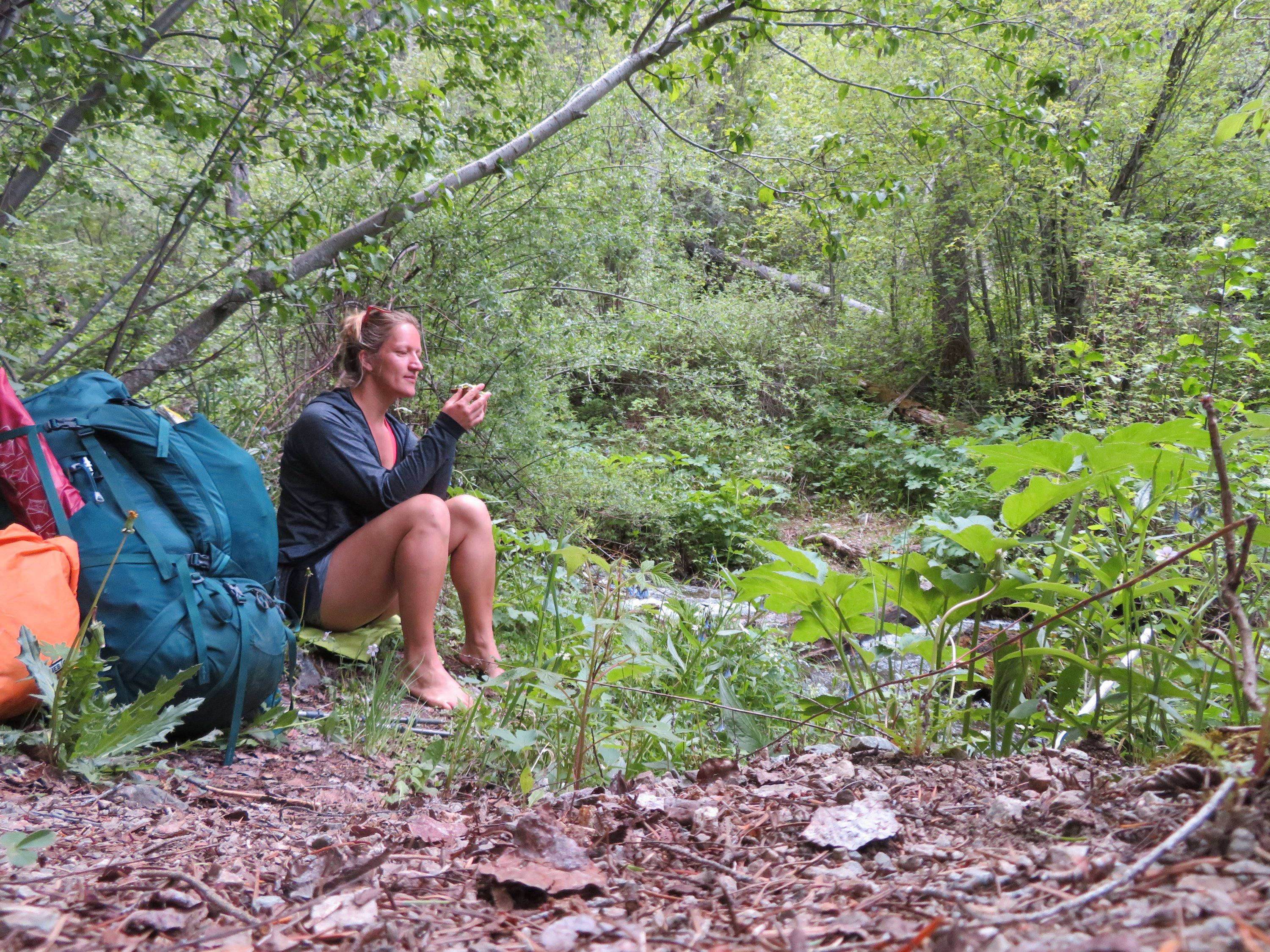 Der Rest der Wanderung verlief dann als eine Mischung aus magischen Wäldern, Flussüberquerungen, wilden Blumen, ein paar weiteren Schneefeldern, atemberaubenden Aussichten, dem Geräusch von fließenden Wasser beim Einschlafen, einer Runde Yoga um den Tag zu begrüßen und dem Verlieren jeglichen Zeitgefühls beim Wandern durch diese Wildnis.