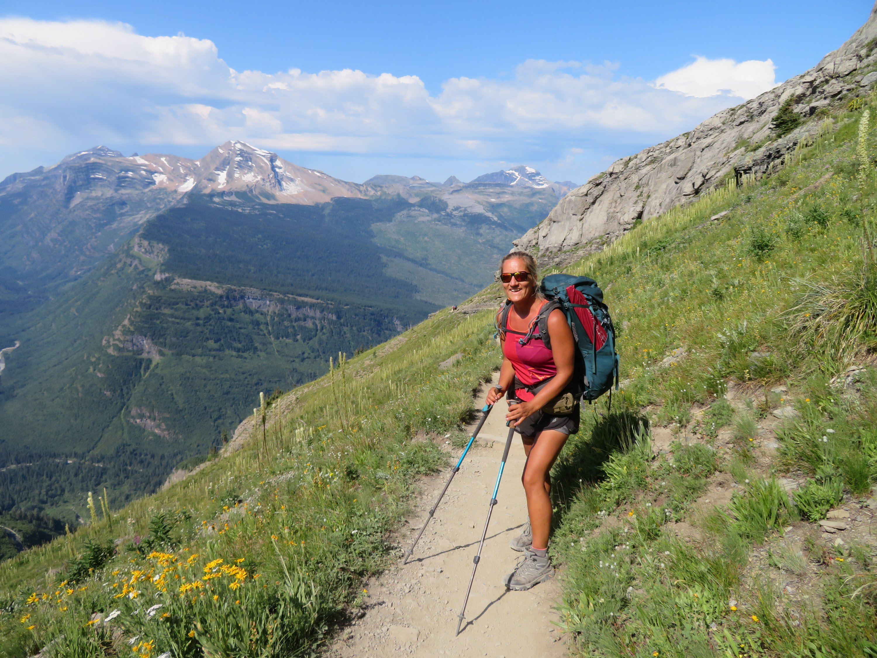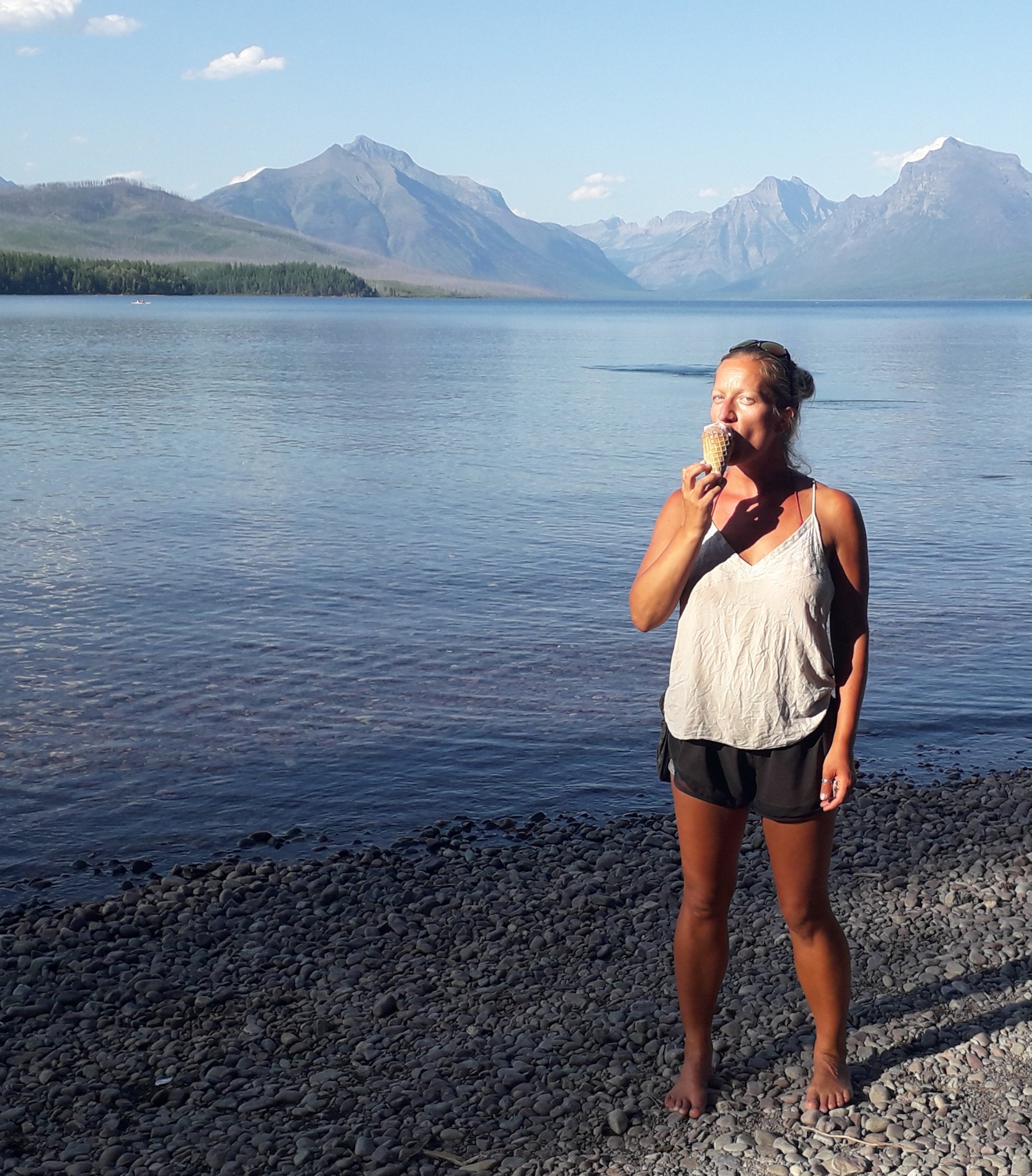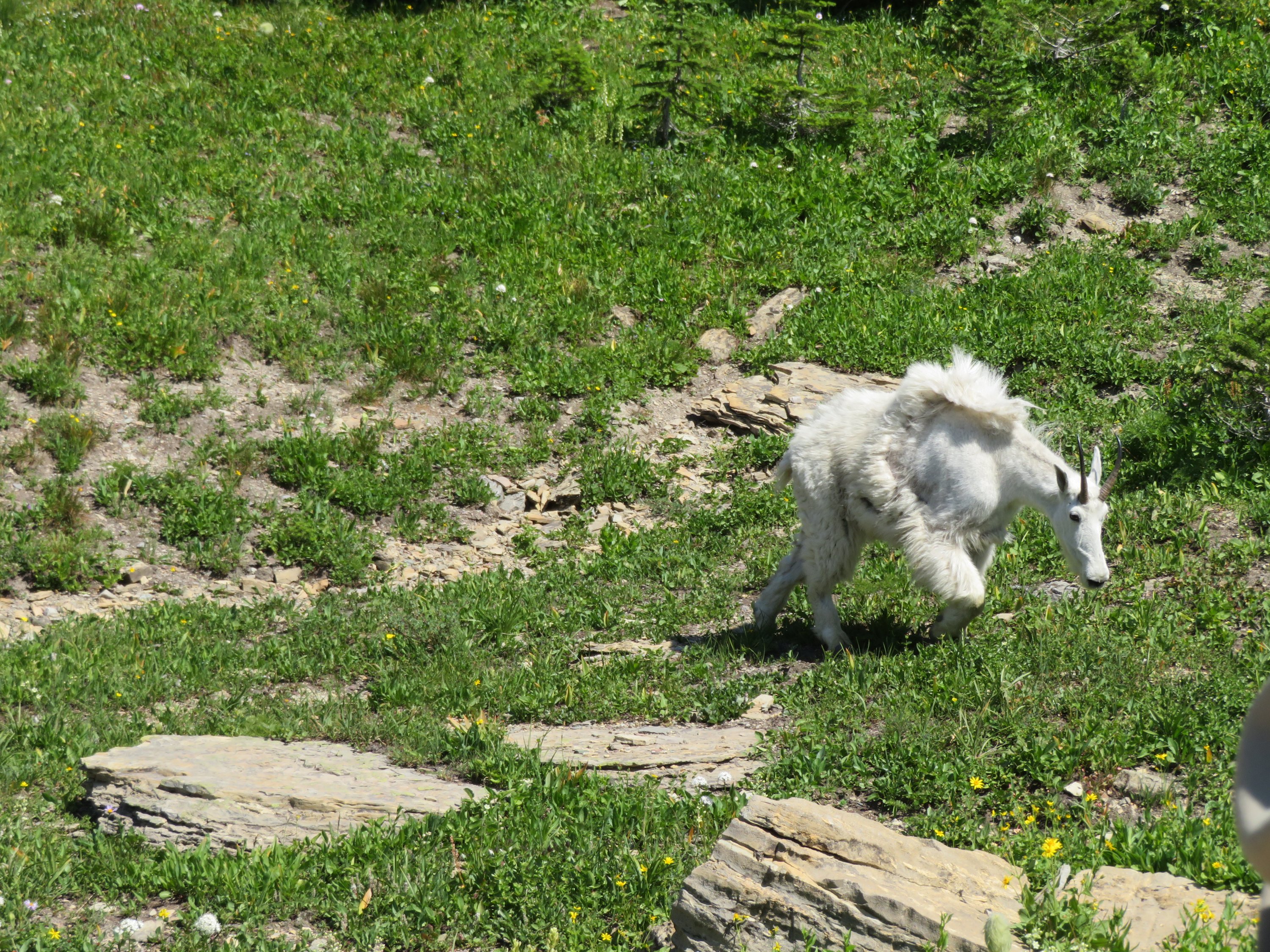 Das feierten wir mit zwei gewaltigen Kugeln super leckeren Eis. Und machten uns dann am nächsten Morgen auf zu unseren letzten sechs gemeinsamen Wandertagen. Durch die unglaubliche Schönheit des Glacier NP! Mit sechs Tagen perfektem Sommerwetter. Blauem Himmel und toller Aussicht. Womit wir wirklich viel Glück hatten, denn häufig gibt es Dunst oder sogar Sperrungen wegen Waldbränden in der Nähe. An manchen Tagen war es sehr heiß, aber in den höheren Lagen wehte immer eine kühle Brise. Und es gibt jede Menge Seen, in die man zur Abkühlung springen konnte. Zu dieser Jahreszeit zu wandern, bedeutete, dass wir eine Fülle an wilden Blumen gesehen haben. Oft hatten wir das Gefühl durch einen botanischen Garten zu laufen, nicht nur wegen der Vielfalt der Blumen, sondern auch wegen der Düfte. Und auch wenn wir nicht allzu viele wilde Tiere gesehen haben, möglicherweise wegen des Rufens…, so haben wir immerhin die Bären, Hirsche, ein Bighornschaf und Bergziegen gesehen. Und viele Murmeltiere, Eichhörnchen und Präriehunde.