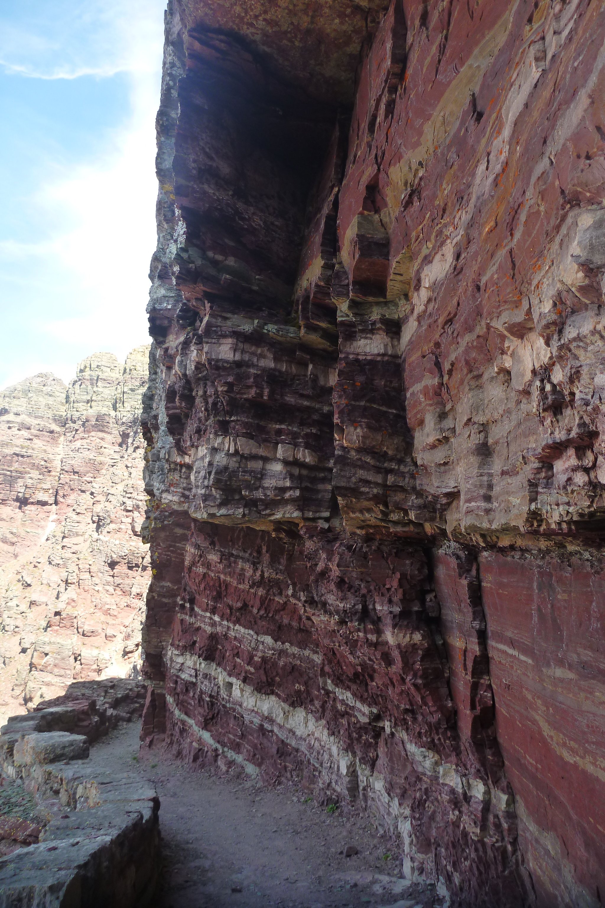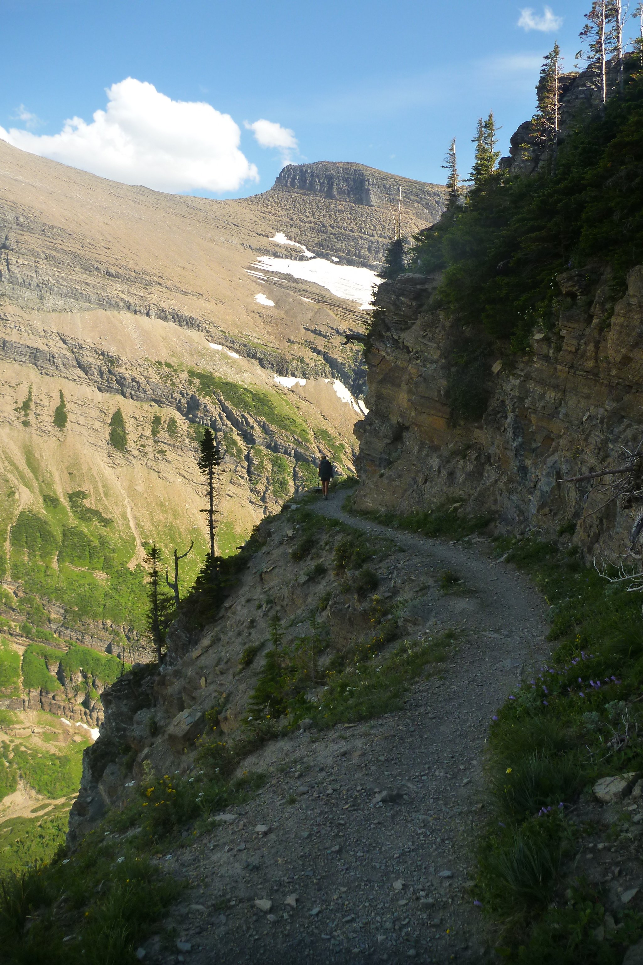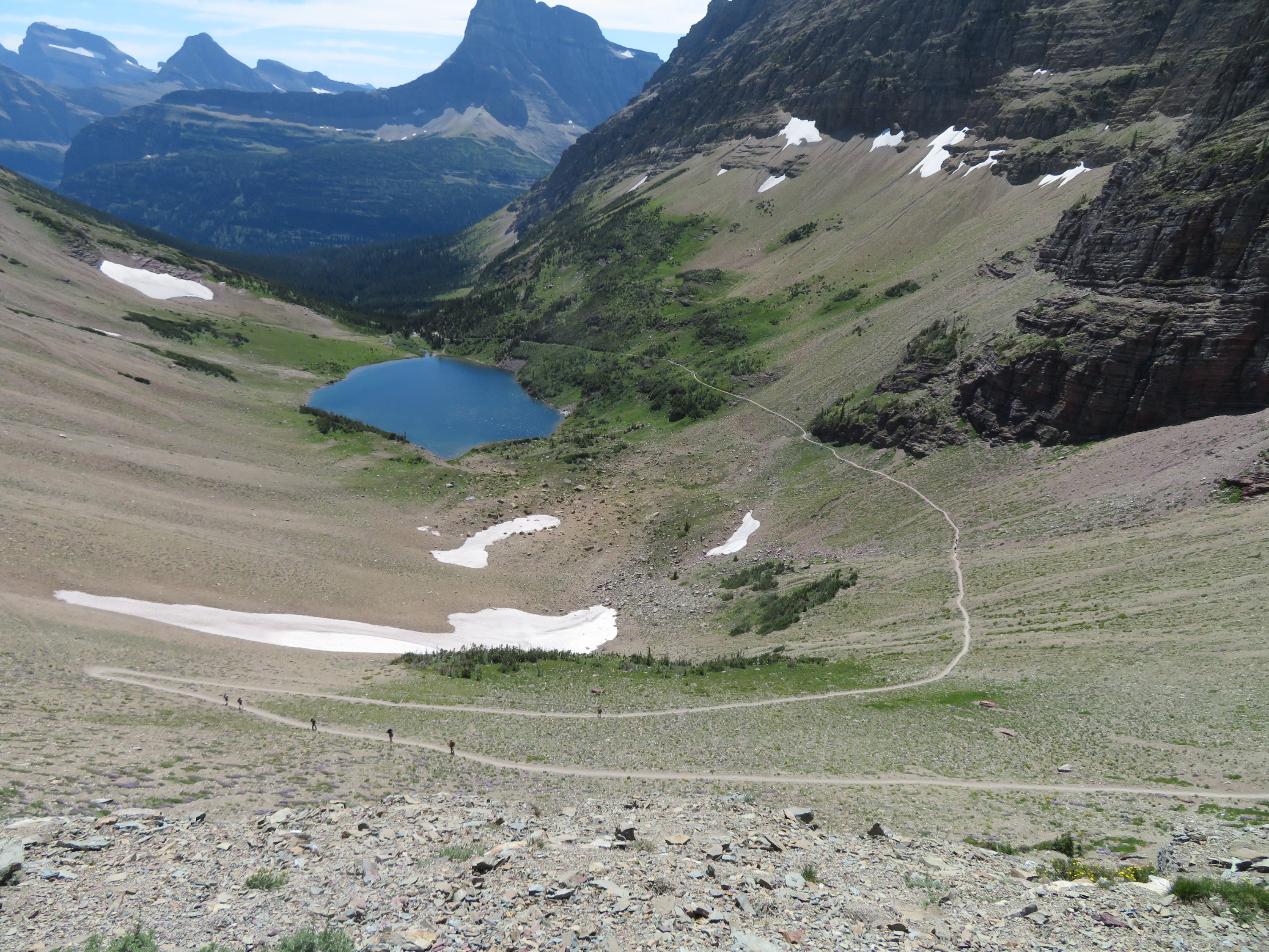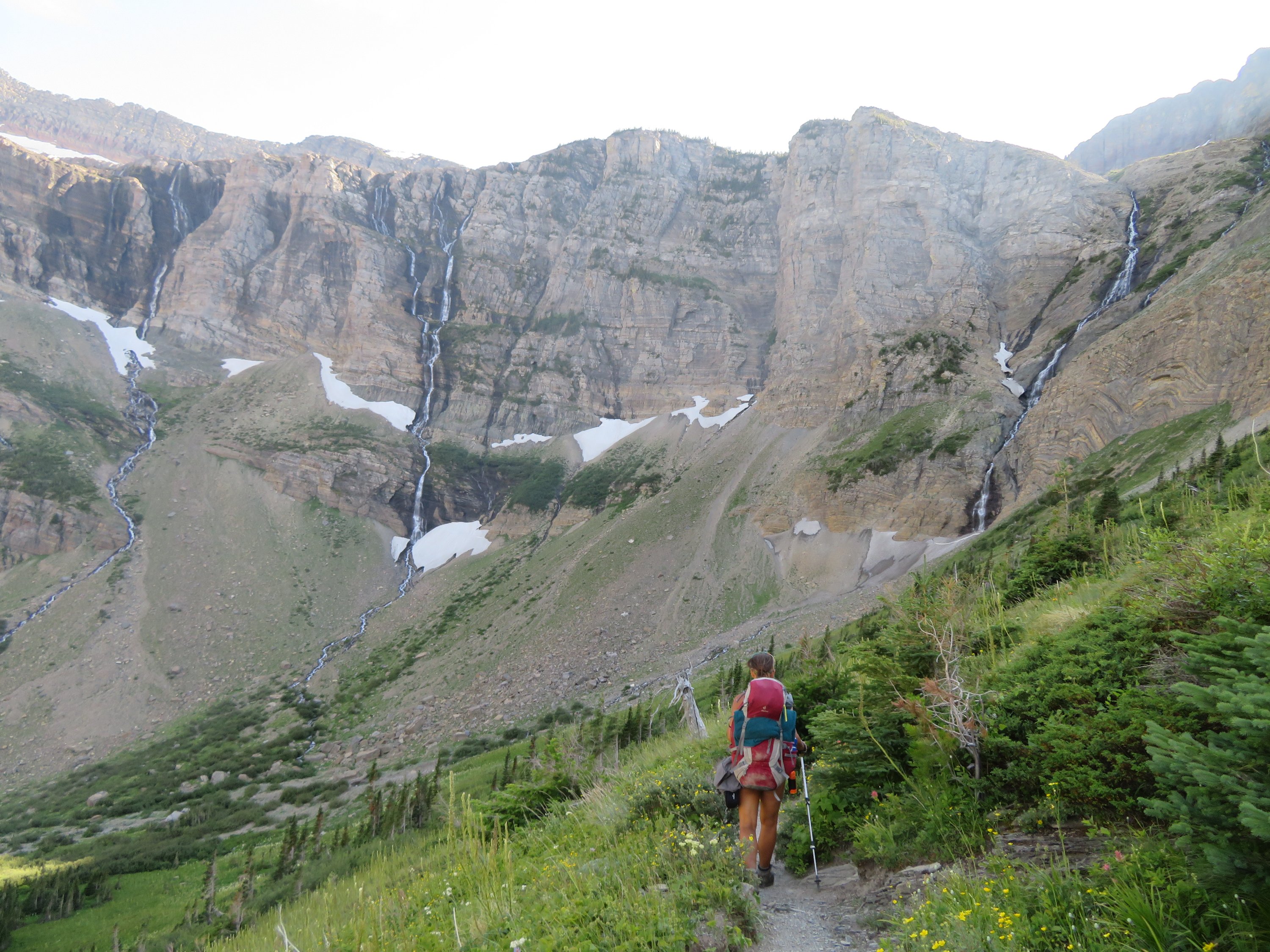 We started the hike at the Loop, all the way up to Granite Chalet. A strenuous uphill climb, especially with our backpacks at their heaviest with all the food as we had just started. From the chalet it was another short hike up to Swiftcurrent Pass, where we were rewarded with a stunning view of Many Glaciers. And a fun hike down, along narrow passages and past waterfalls.