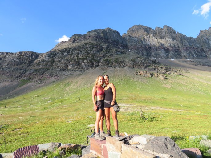Being on an adventure like this is already an experience of a life time. But coming up to Glacier and the week we spent there…I feel blessed beyond words. It started all with our successful hitchhike and us meeting Diane, who we stayed with for one night and who then even offered to take us up to the park. Where she dropped us at the ranger station. Again we had not made any plans as to where we wanted to hike but wanted to make it dependent on the available backcountry camping permits. It wasn’t as easy as it is really busy at Glacier and confusing for the many possible routes you can take. But with the fantastic help of one of the rangers we not only managed to map out a trail and secure permits just in time before the office closed but the route we were to hike is very popular and apparently hard to get. It meant that we had a couple of longer sections between campsites but felt confident that we could make it. We celebrated with two massive scoops of super delicious ice cream. And set off on our last six days of hiking together. Through the incredible beauty of Glacier NP! With six days of perfect summer weather. With blue skies and great views. Which is lucky because often there would be a haze or even closures due to nearby forest fires. Most days it was hot, but at higher elevations there was always a nice breeze. And there were plenty of lakes to jump into to cool off. Hiking this time of the year meant that we got to see an abundance of wild flowers. Which often made it feel like as if walking through a botanical garden, not only for the variety of flowers we got to see but also for the smell. And although we didn’t see too much wildlife, possibly due the hollering…, we still got to see those bears, some deer, a bighorn sheep and mountain goats. And plenty of mammals.