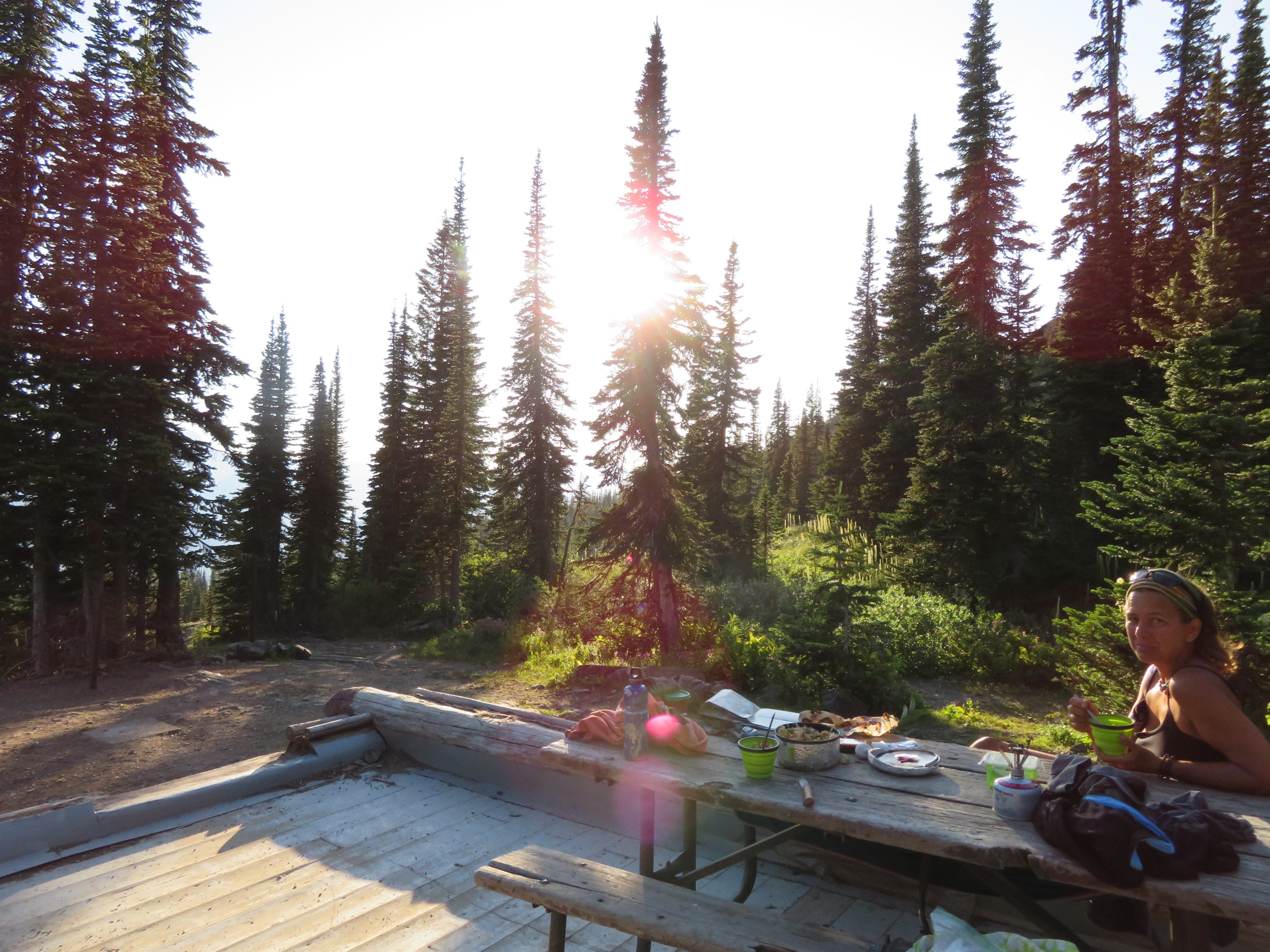The next day was fairly relaxed as it was the shortest part of our trail and without much elevation change. So we started the day with yoga, picked huckleberries and took long breaks along the way at a waterfall and Cosley Lake.