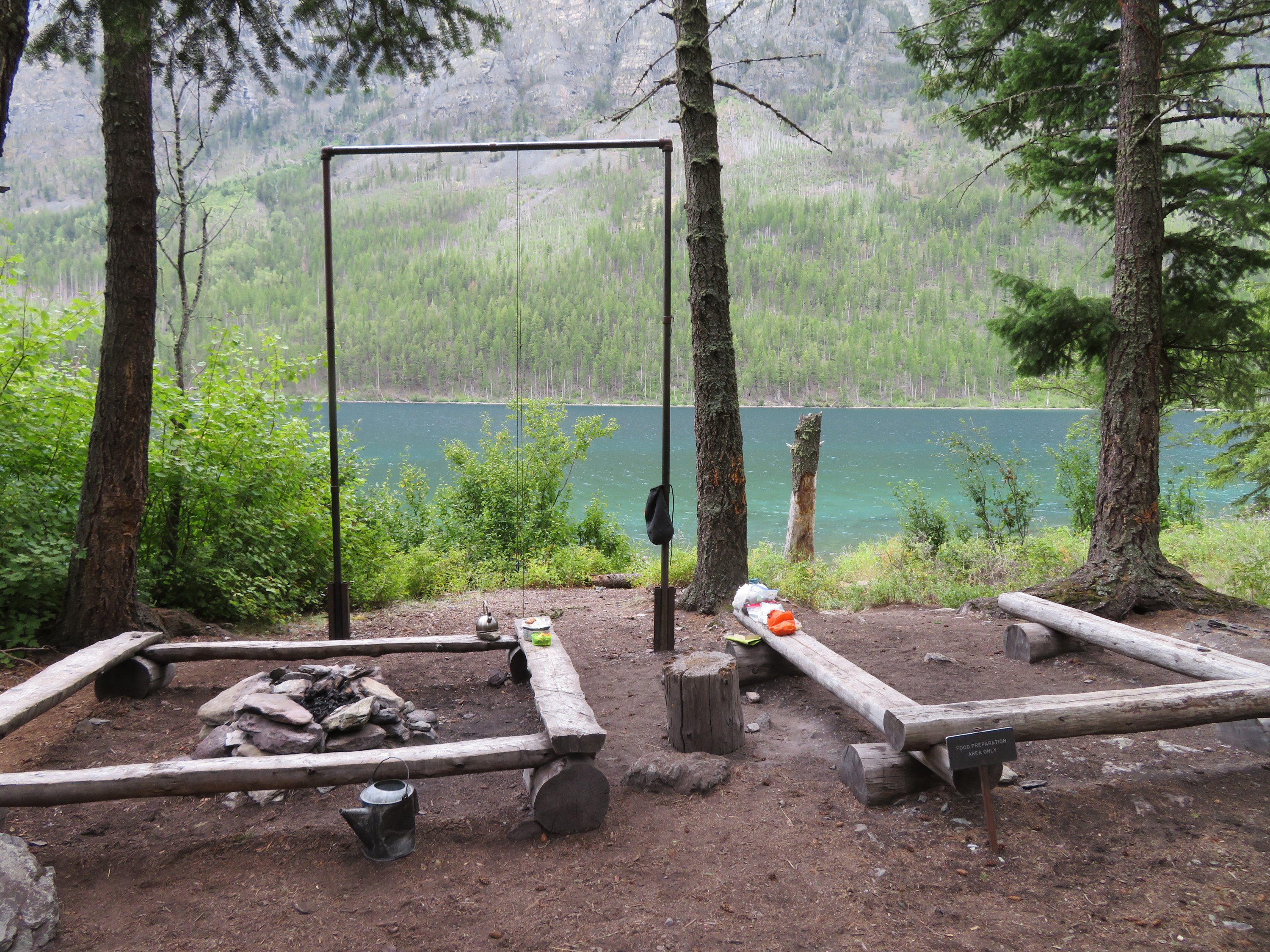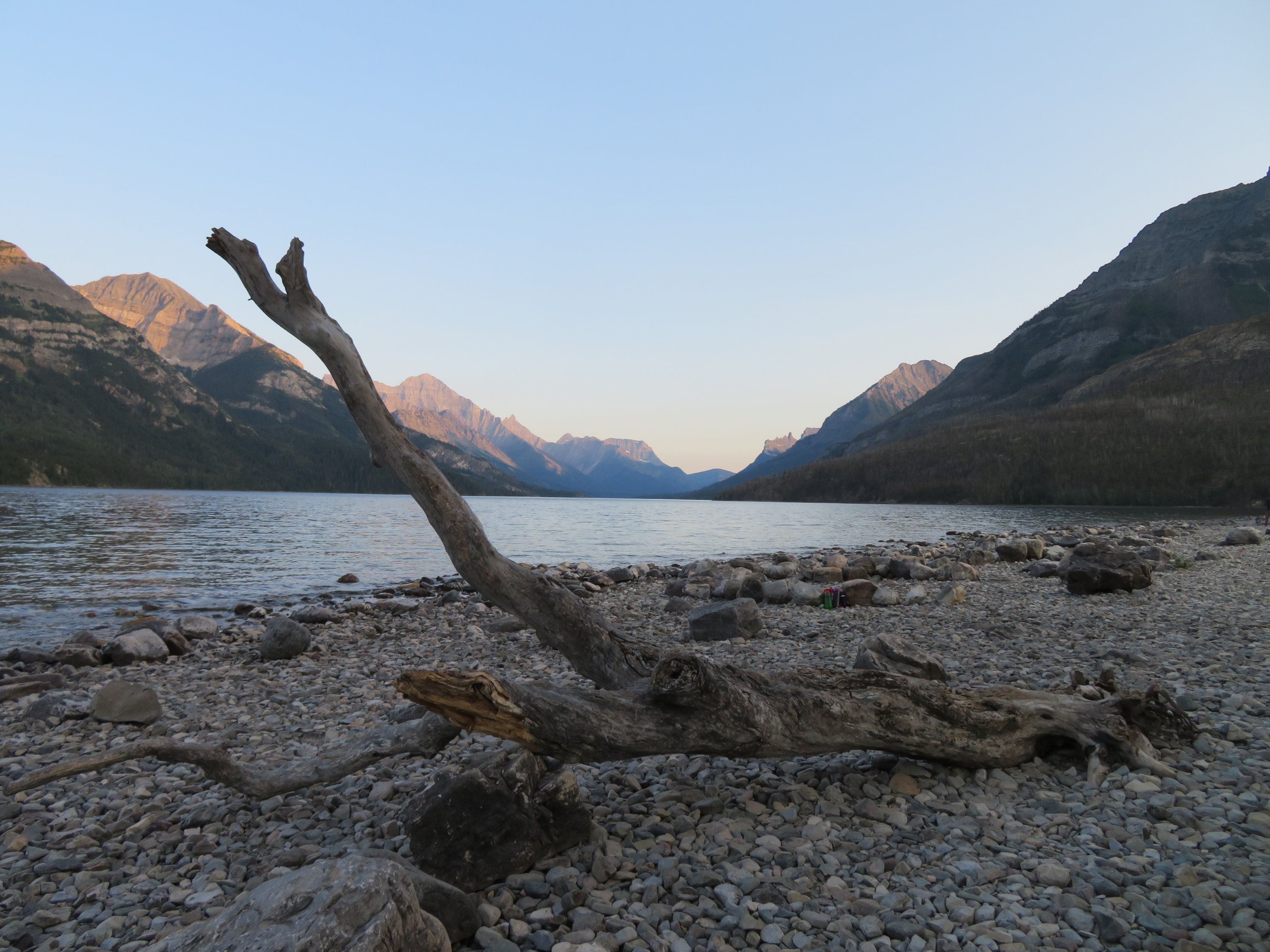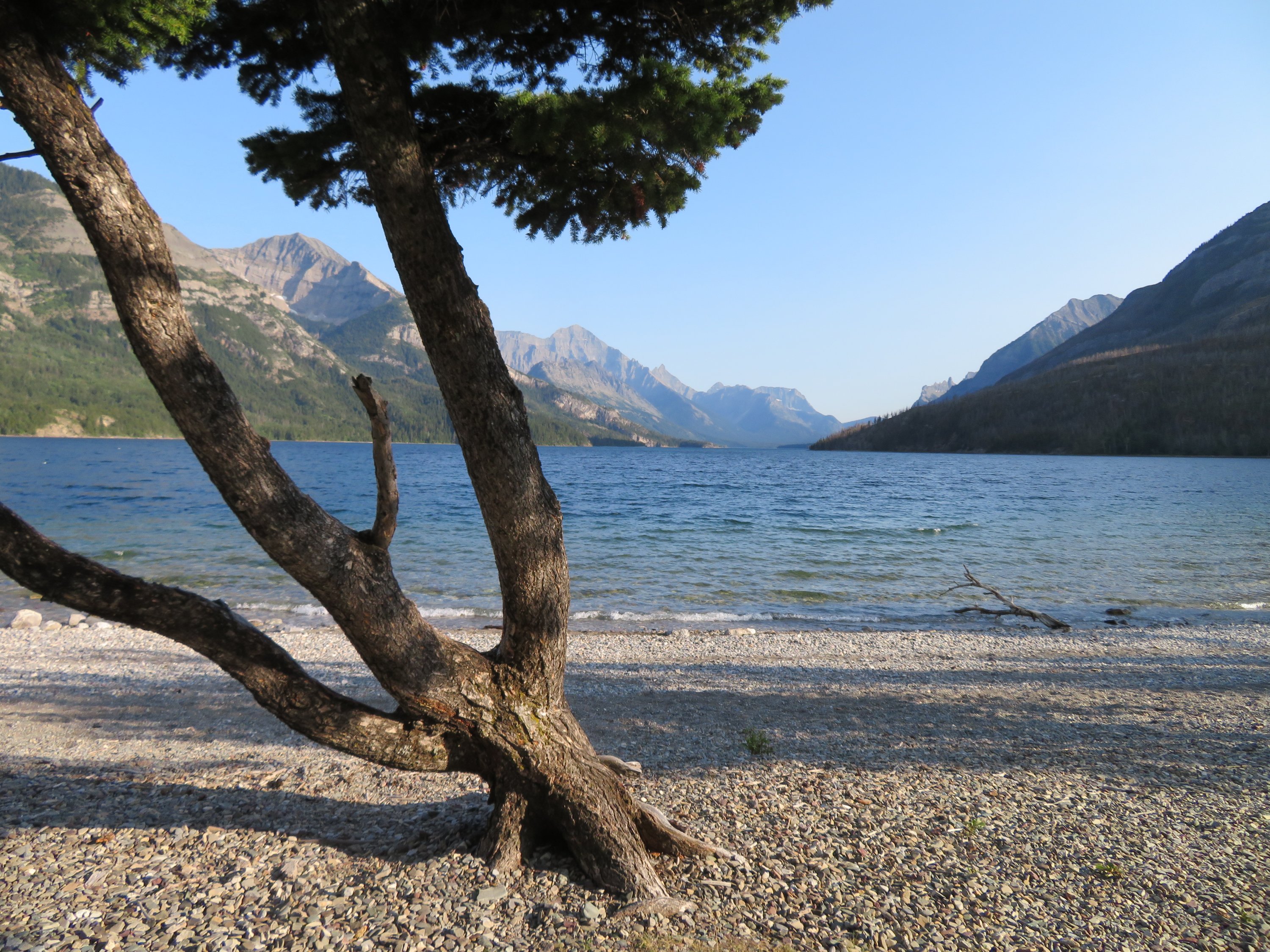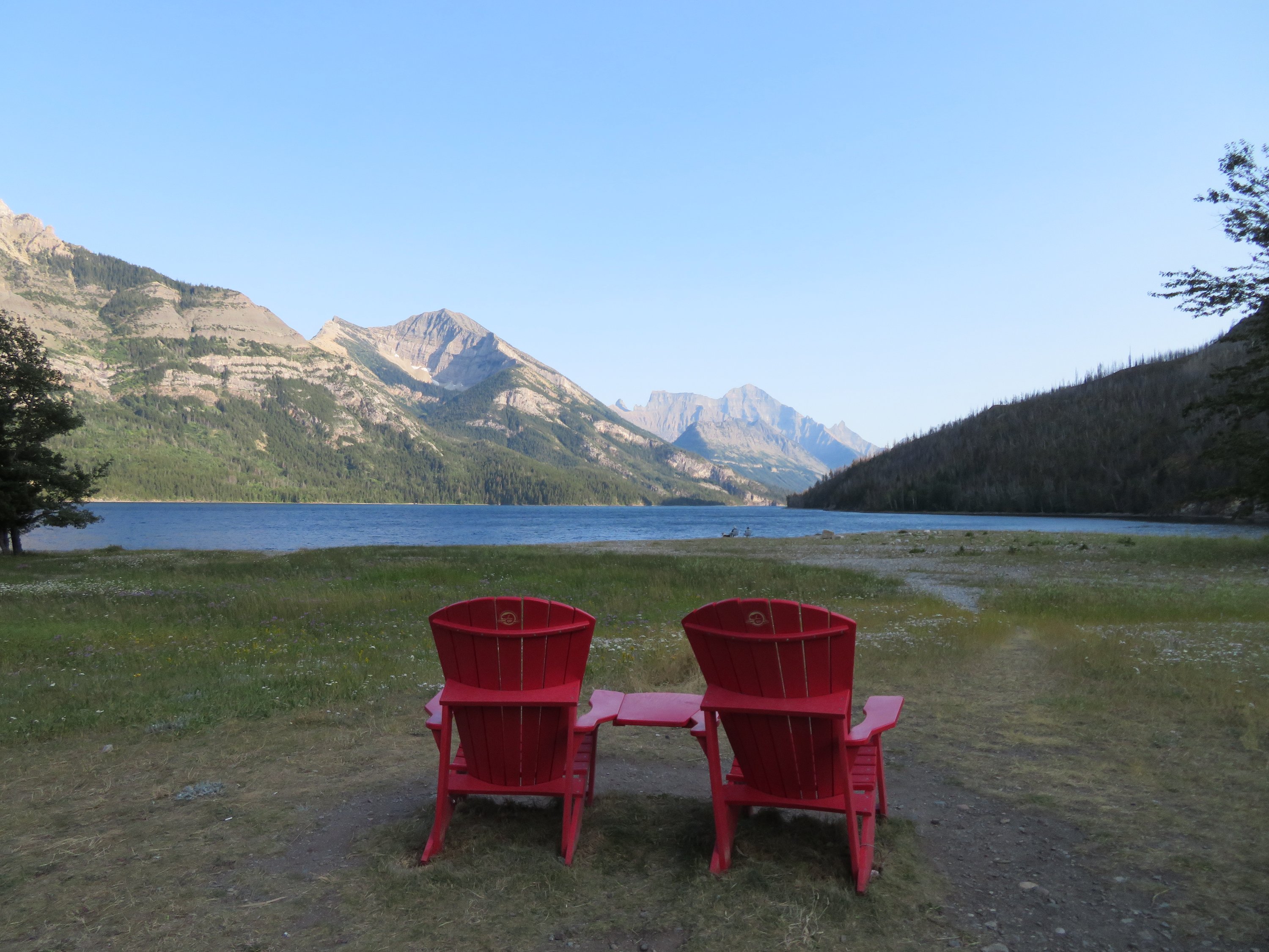 Anke wurde von ihrem Sohn abgeholt, der in Calgary lebt. Also beschloss ich, die Chance zu nutzen mit über die Grenze nach Kanada zu fahren, mich am Waterton NP absetzten zu lassen und von da aus zurück über die Grenze und damit in den Glacier NP zu wandern. Waterton und Glacier NP sind im Grunde ein Nationalpark, der durch die Grenze zwischen den USA und Kanada getrennt ist. D.h. ich konnte etwas Zeit in Waterton verbringen, um dann ueber die Grenze zu wandern und dann eine andere Gegend im Glacier NP zu erkunden. Am liebsten wäre ich auch im Waterton NP gewandert. Da der Park jedoch vor zwei Jahren zum Großteil von einem schweren Waldbrand betroffen war, waren viele Bereiche des Parks immer noch nicht wieder so einfach zugänglich. Also verbrachte ich nur einige Tage in Waterton Village, genoss die Pause, entspannte mich am Wasser, schrieb meinen Blog und hatte Zeit mich endlich mal wieder ausfuehrlich bei Familie und Freunden zu melden.