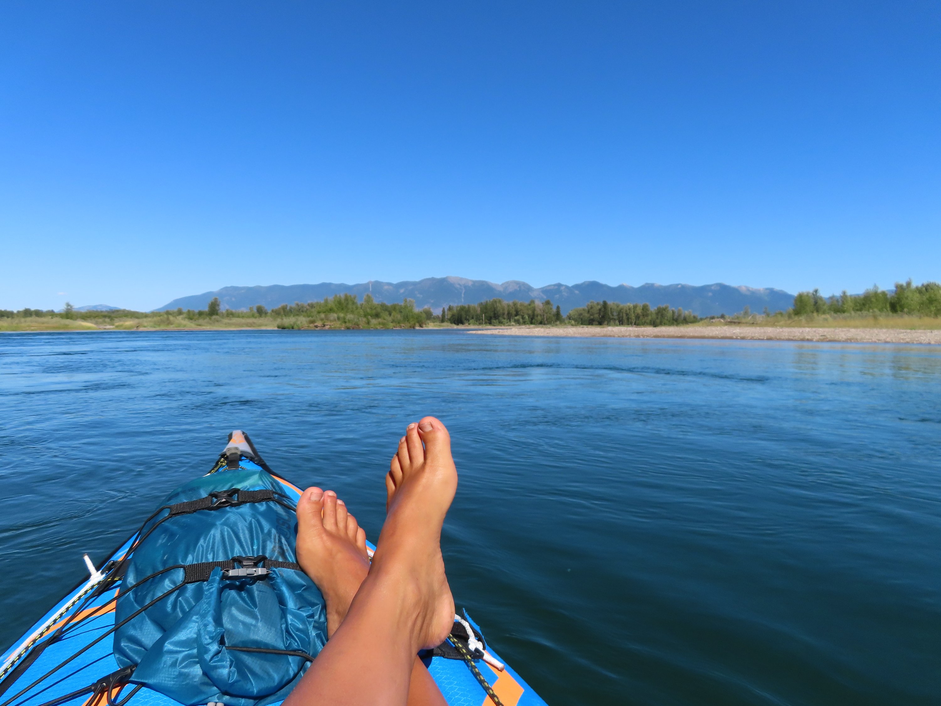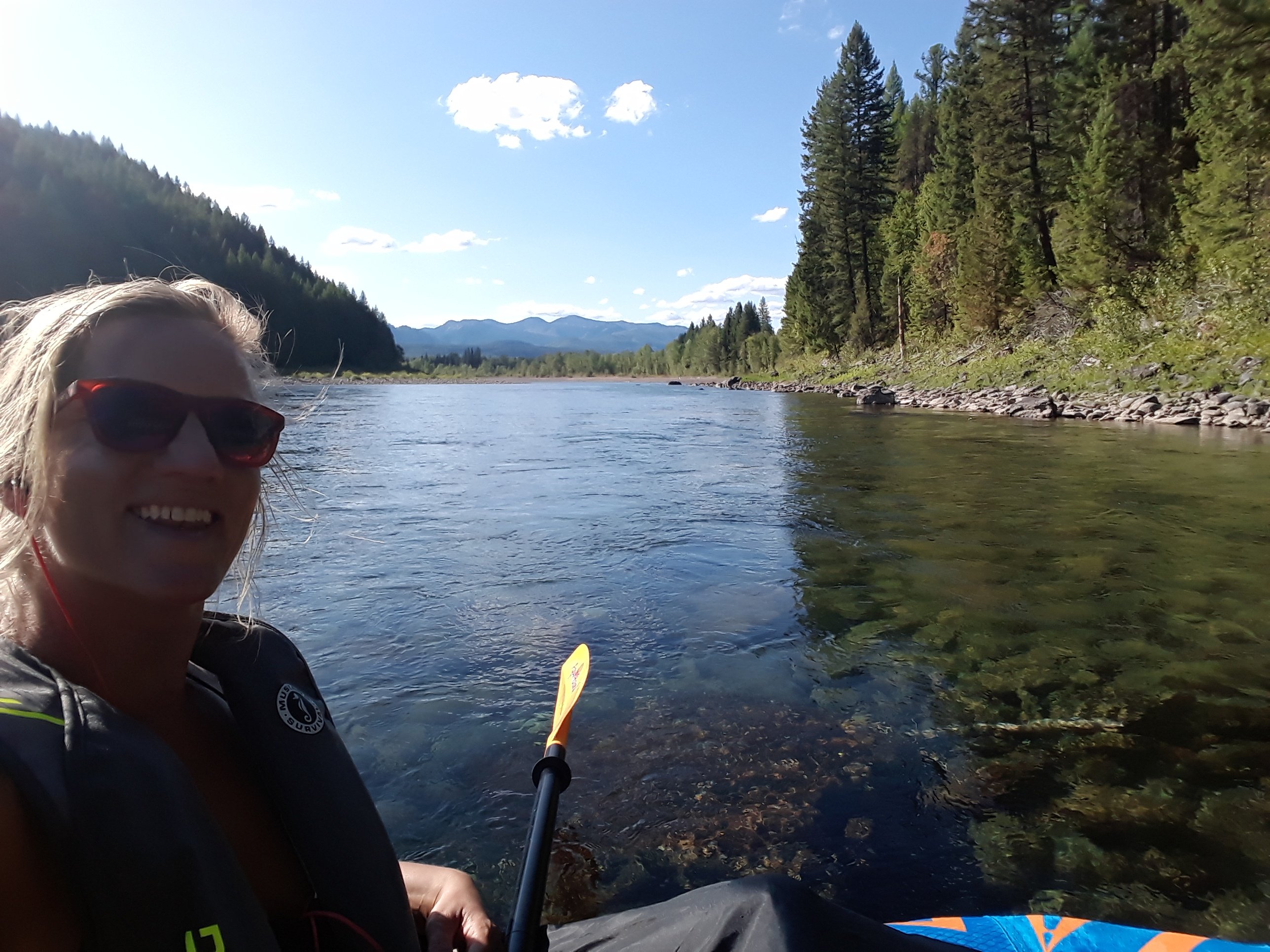 Having these different experiences was probably the best part part of this adventure so far. The North Fork with its faster current, navigating between shallow and rough rapids, the calmer Flathead River with its slow moving waters and the Flathead Lake with its vastness, the wind and the waves. The first part was more technical paddling whereas the lower river and lake mostly meant building up strength as I would paddle for hours straight, one day even up to nine hours. Adapting to new conditions and learning to read the river and lake, understanding the boat but also my capabilities has been a tremendous experience and learning curve for myself. The challenges on the way made me only to grow faster and appreciate so much more what I have achieved. Not only that I managed to make this crazy idea become a reality but also knowing what I’m capable of. How I deal with challenges in that very moment as well as afterwards and how I learn from them. That after every setback there is a comeback. If I believe in myself.
