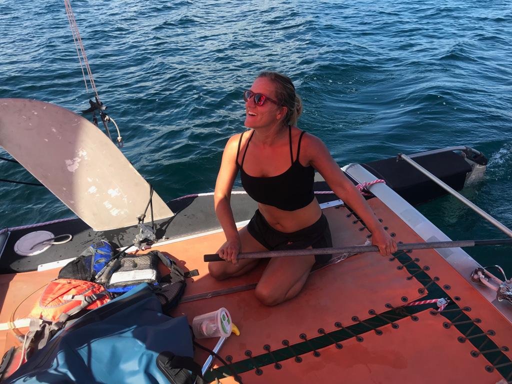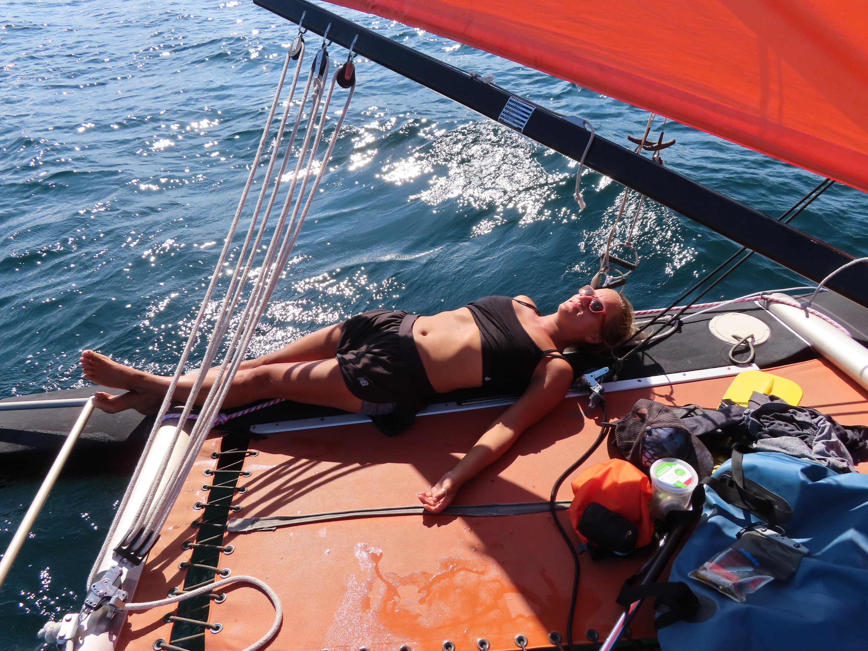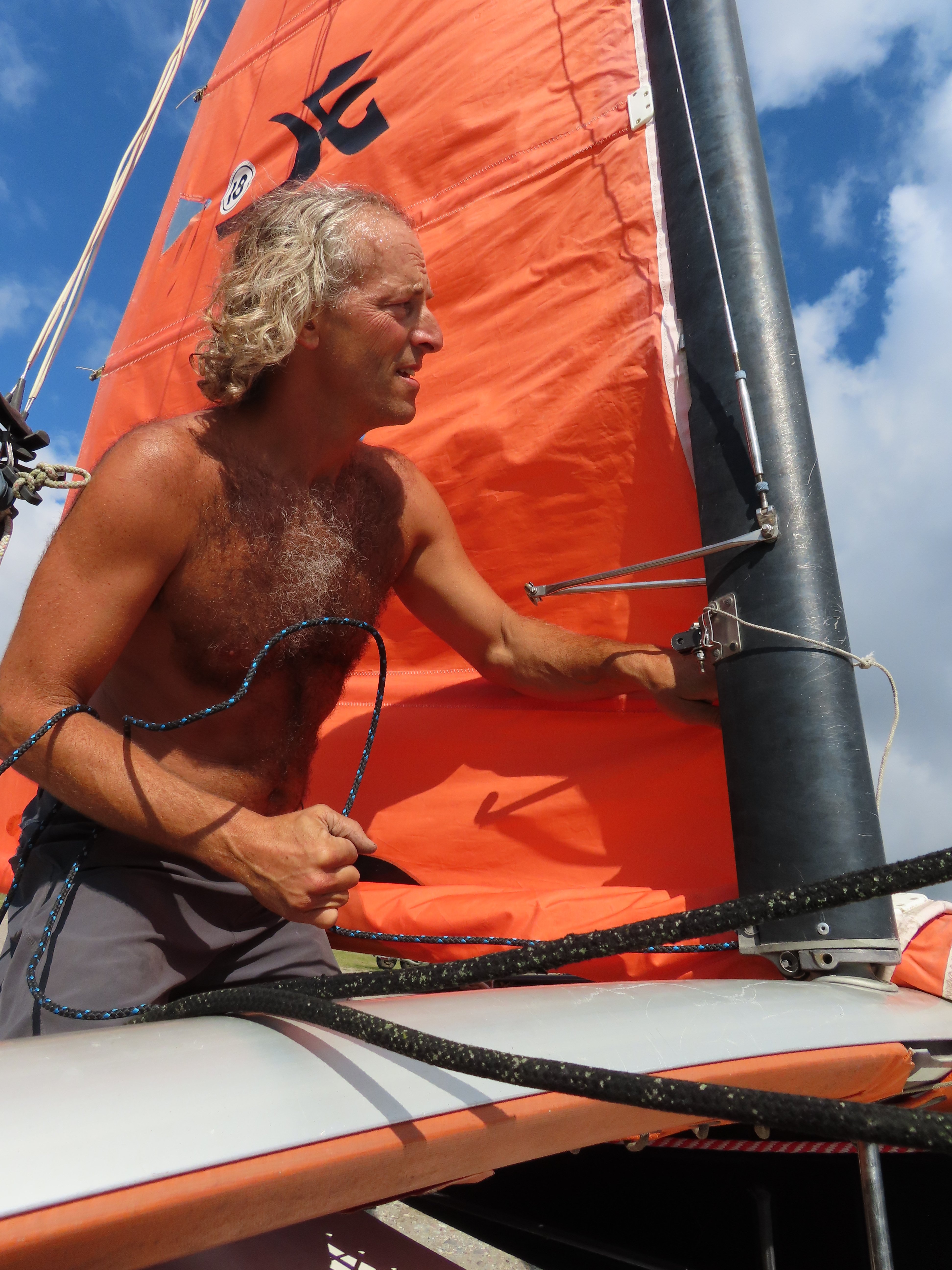 Auf einem Segelboot zu sein, ist natürlich ganz anders als in einem Kajak. Der Körper ist viel weniger gefordert, obwohl auf so einem kleinen Katamaran sicherlich eher als auf größeren Segelbooten. Wir mussten jedes Mal die Position wechseln, wenn wir die Richtung änderten. Und das Körpergewicht im allgemeinen spielt eine große Rolle beim ausbalancieren des Bootes. Die Geschwindigkeit ist natürlich der Hauptunterschied. Und einfach nur berauschend. Das Wetter war auch wieder perfekt. Also hatten wir eine fantastische Zeit. Ich liebe es einfach auf dem Wasser zu sein. Die Bewegung. Die Wellen. Der Wind. Die Sonne im Gesicht. Die Wolken beobachten. Beim Segeln empfand ich es als erstaunliche Erfahrung, wie man sich mit der Bewegung des Bootes und des Windes verbindet. Irgendwann konnte ich es instinktiv fühlen. Es war nur ein Tag und ich bekam nur einen Einblick darin, wie Segeln sein kann. Aber ich hoffe, dass es nicht meine letzte Gelegenheit war segeln zu gehen!