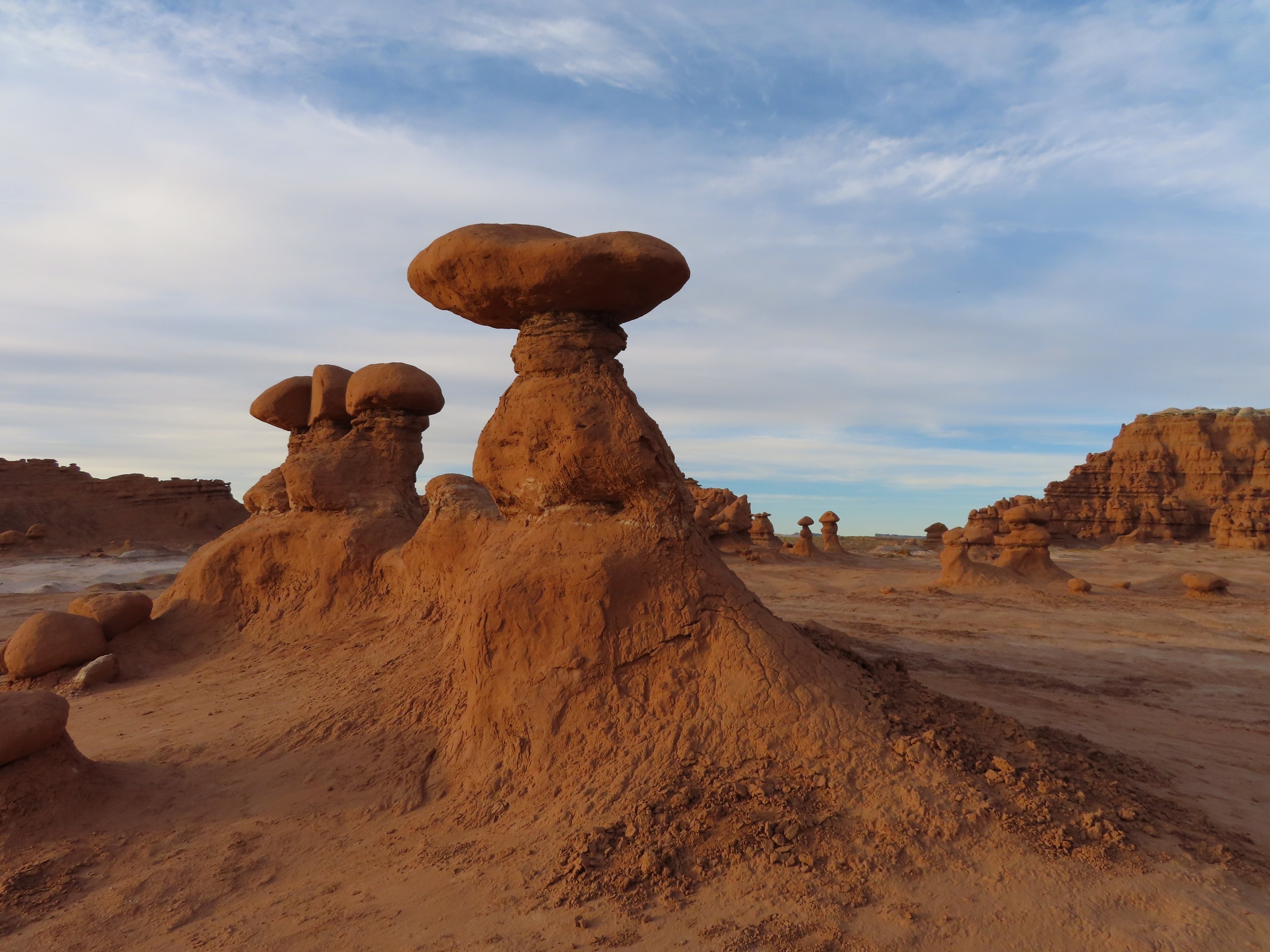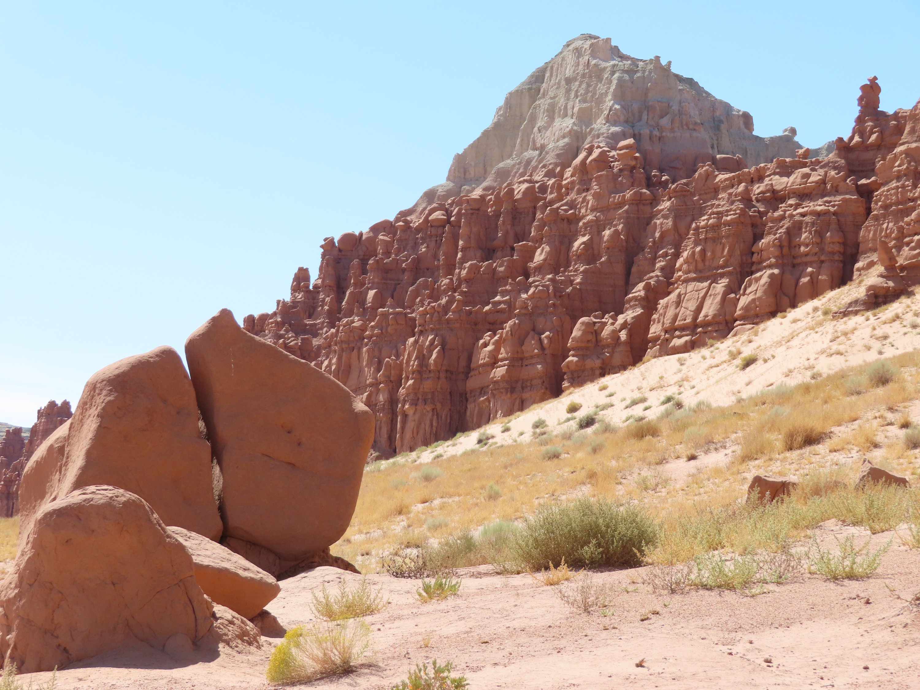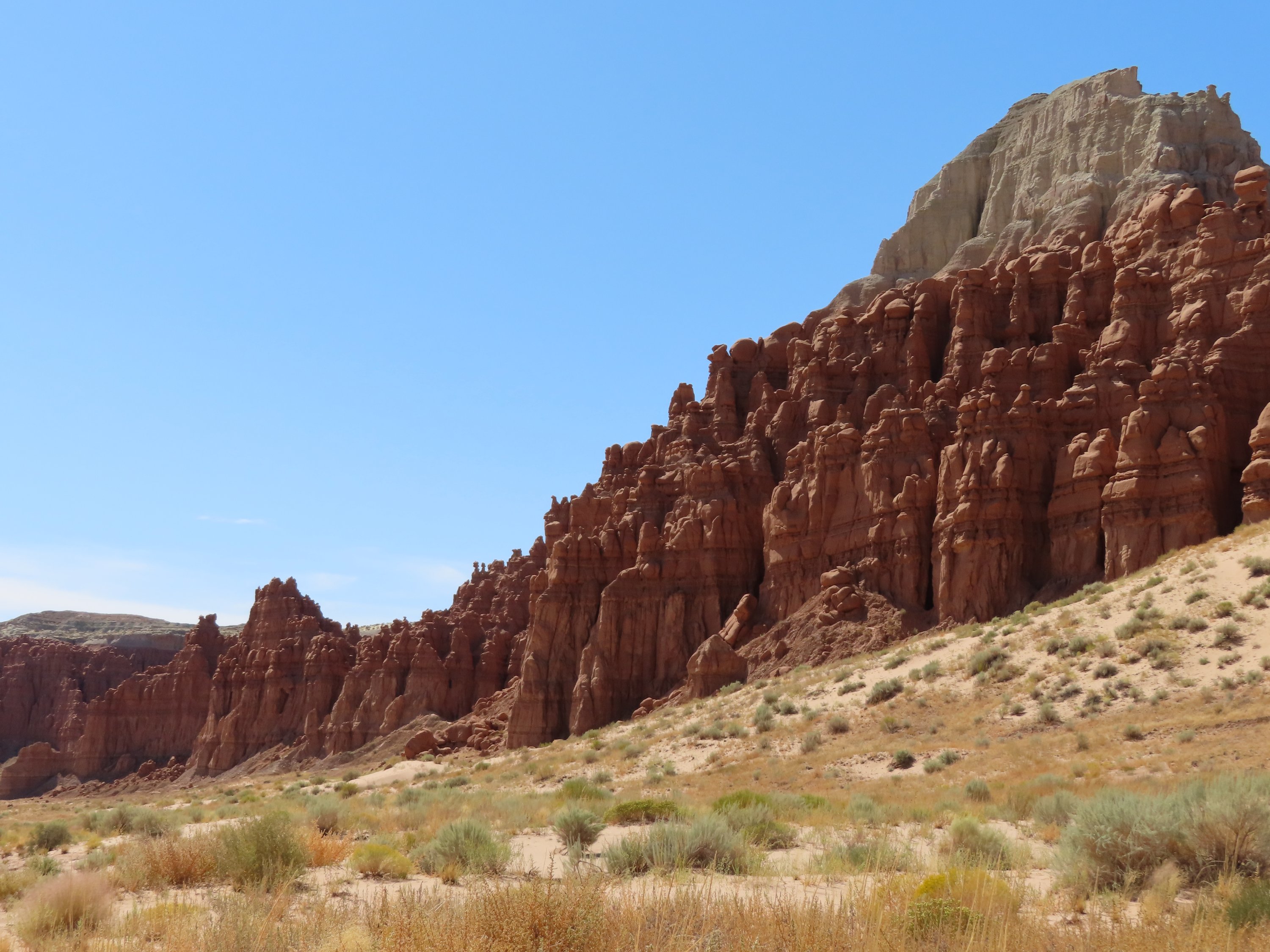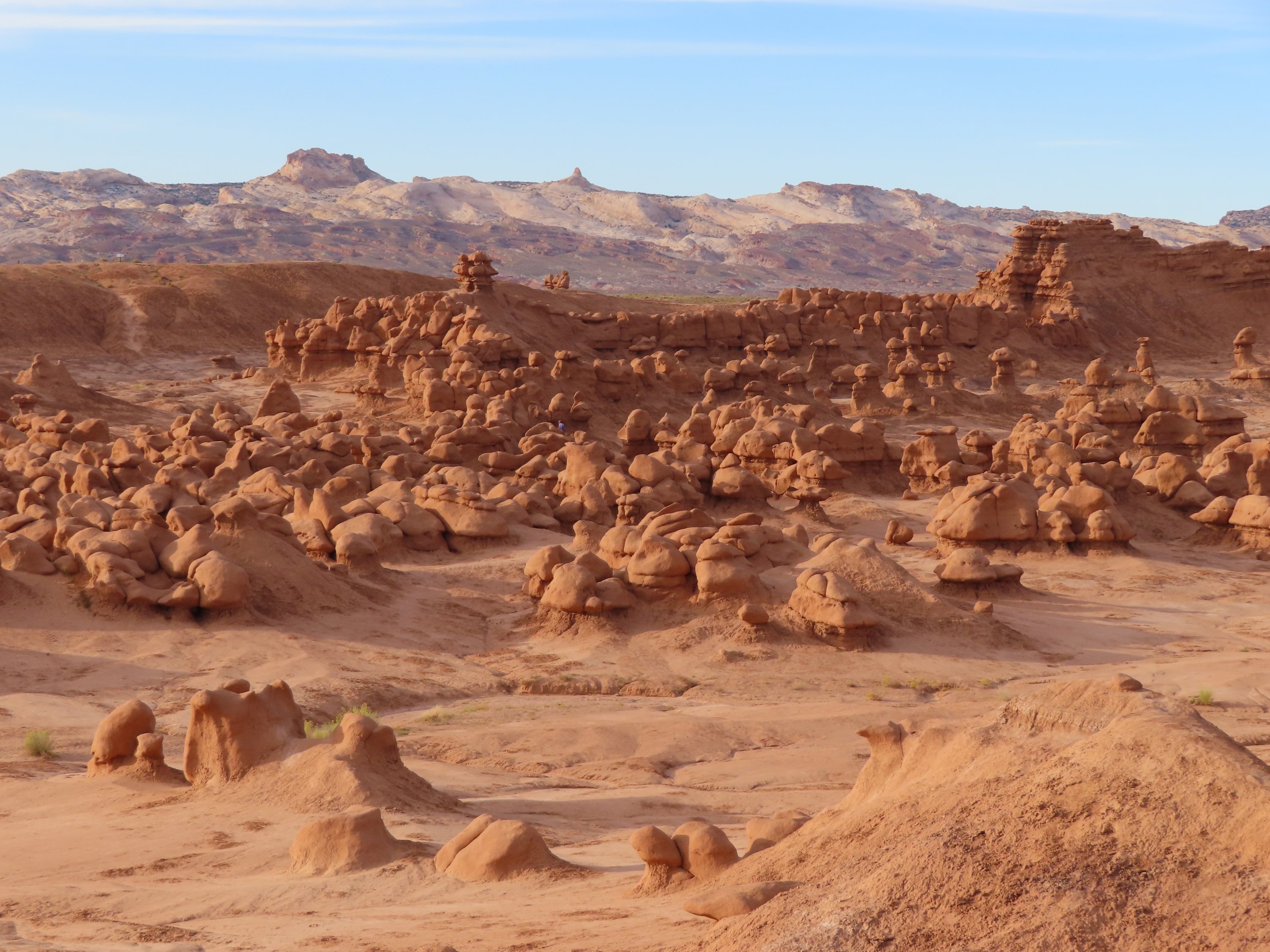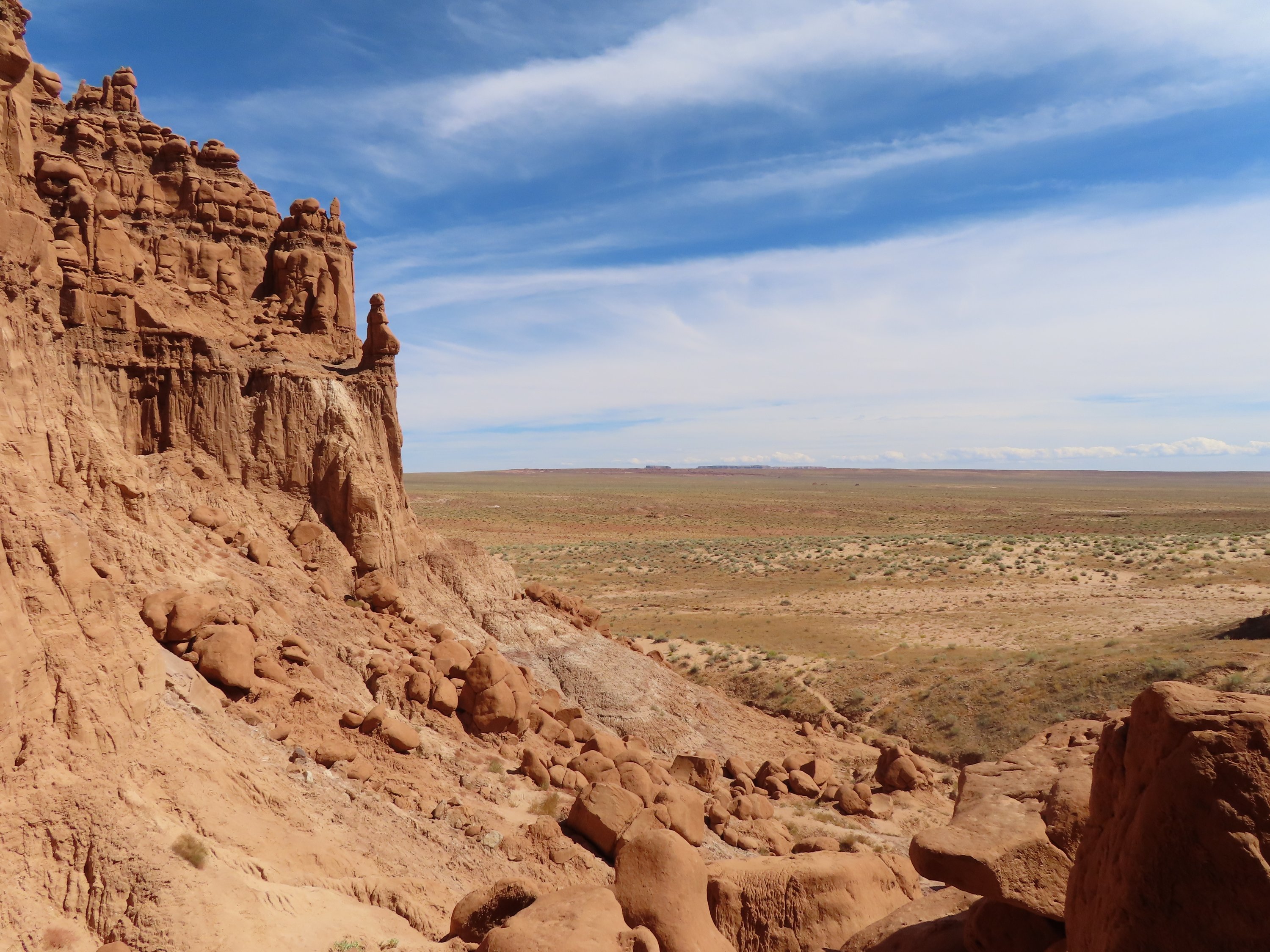 Nach meiner Wanderung durch den Wild Horse Canyon habe ich den Goblin (Kobolde) Valley Park erkundet und da die Nacht verbracht. Es ein so einzigartiger Ort und ich wüsste nicht, wie ich diese Sandsteinskulpturen erklären soll. Ich poste am besten einfach ganz viele Bilder. Ich verbrachte den Abend damit zwischen den kleinen Kobolden umher zu laufen und erlebte den Sonnenuntergang und die Abenddämmerung in dieser Art Wunderland. Am nächsten Tag wanderte ich durch die Canyons zur Rückseite dieser massiven Wand aus diesen Sandsteinskulpturen mitten im Mesa. Welche unglaubliche Weite. Ich kletterte zwischen den Sandsteinfelsen herum und in gigantische Höhlen und wanderte durch die Wüste. Was sich anfühlte wie nicht von dieser Welt. Sogar die Pflanzen, dir ich gesehen habe, sahen aus wie von einem anderen Planeten. Es war so heiß, selbst der Wind fühlte sich heiß an. Und alles woran ich denken konnte und mich wundern, war, wie diese frühen Siedler in einer Umgebung wie dieser zurecht kamen. Es fühlte sich nach einem so feindlichen Ort an. Gleichzeitig war es erstaunlich all diese Lebensformen, Vegetation wie Tiere, zu sehen und wie sie sich diese Natur angepasst haben.