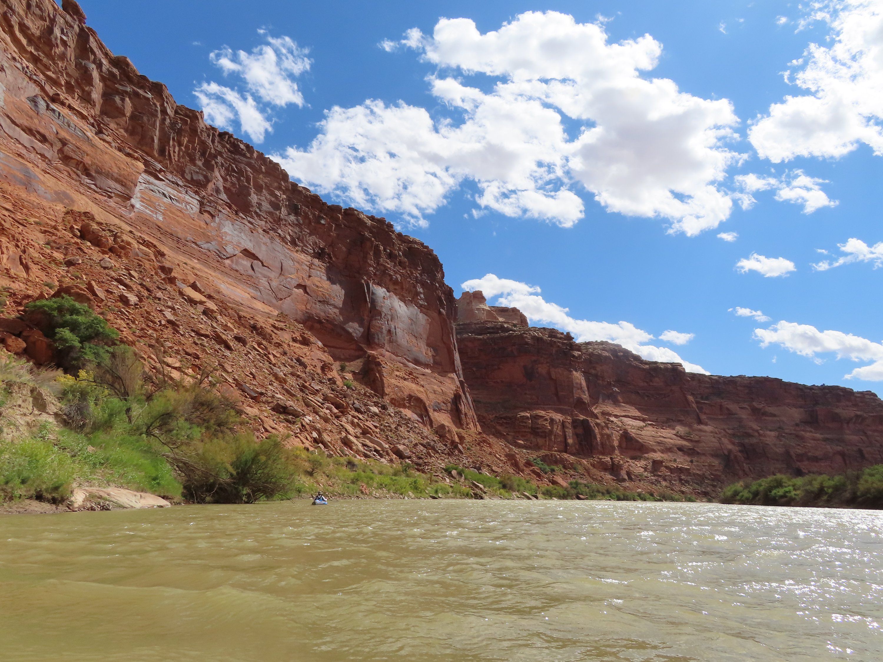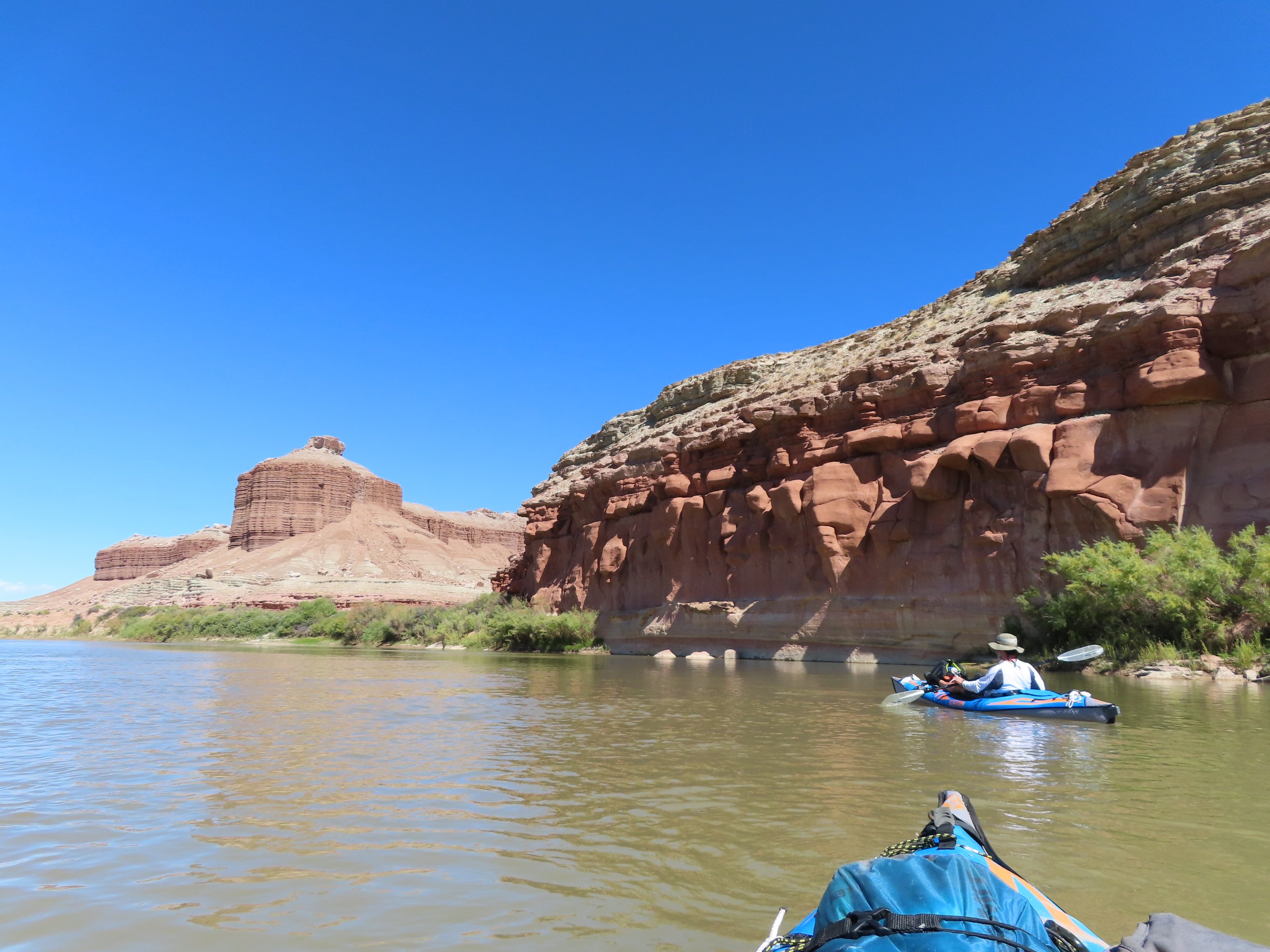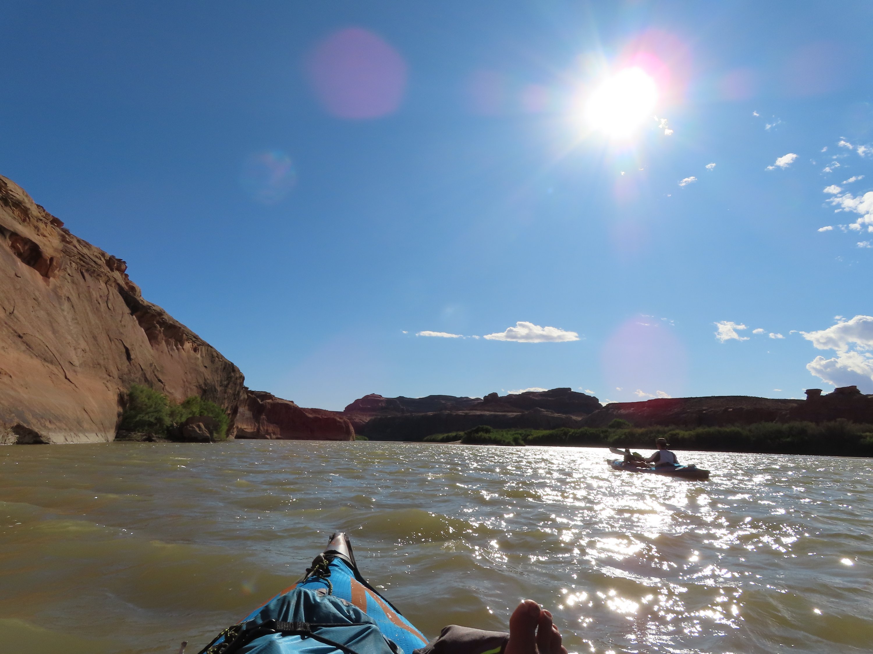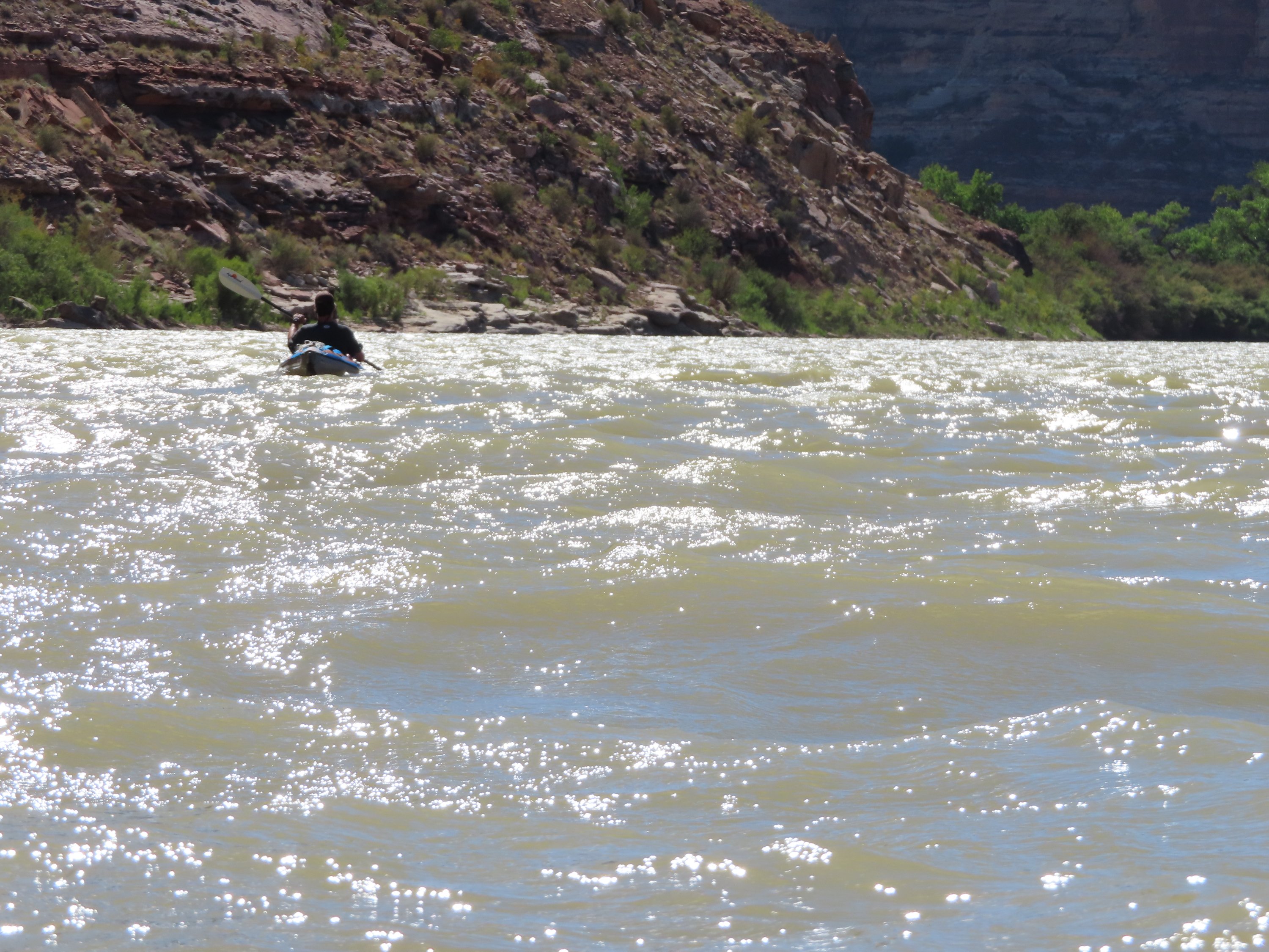 Dan und ich haben das Abenteuer gesucht. Und was für ein Abenteuer wir hatten. Eine Kajak Tour auf dem Green River. 90 km von Green River Town bis Mineral Bottom. Mit allen Komponenten, die ein Abenteuer haben sollte: sieben Tage Wildnis, grandiose Natur und einzigartige Ausblicke, Erkundung der Sehenswürdigkeiten entlang des Flusses, erwägen von außerirdischen Verschwörungstheorien, schlafen unter den Sternen, viel Glück mit dem Finden schöner Campingplätze, eine geschichtliche Verbindung, spannende Begegnungen mit der Tierwelt, eine Nacht mit Blitz und Donner, zwei Tage mit starkem Wind und stromaufwärts getriebenen Wellen, aber abgesehen davon perfektes Wetter, stundenlanges treiben lassen durch atemberaubende Landschaften genauso wie stundenlanges paddeln gegen den Wind und durch ernsthafte Wellen, einen Schreckmoment (aka The Splash), einige gelernte Lektionen, einer sagenhaften Fahrt auf einer 1973er Yamaha…aber vor allem ein richtig gute Zeit. Sich einfach glücklich zu fühlen eine solche Schönheit, Weite, Zeit und Wildnis genießen zu dürfen.
