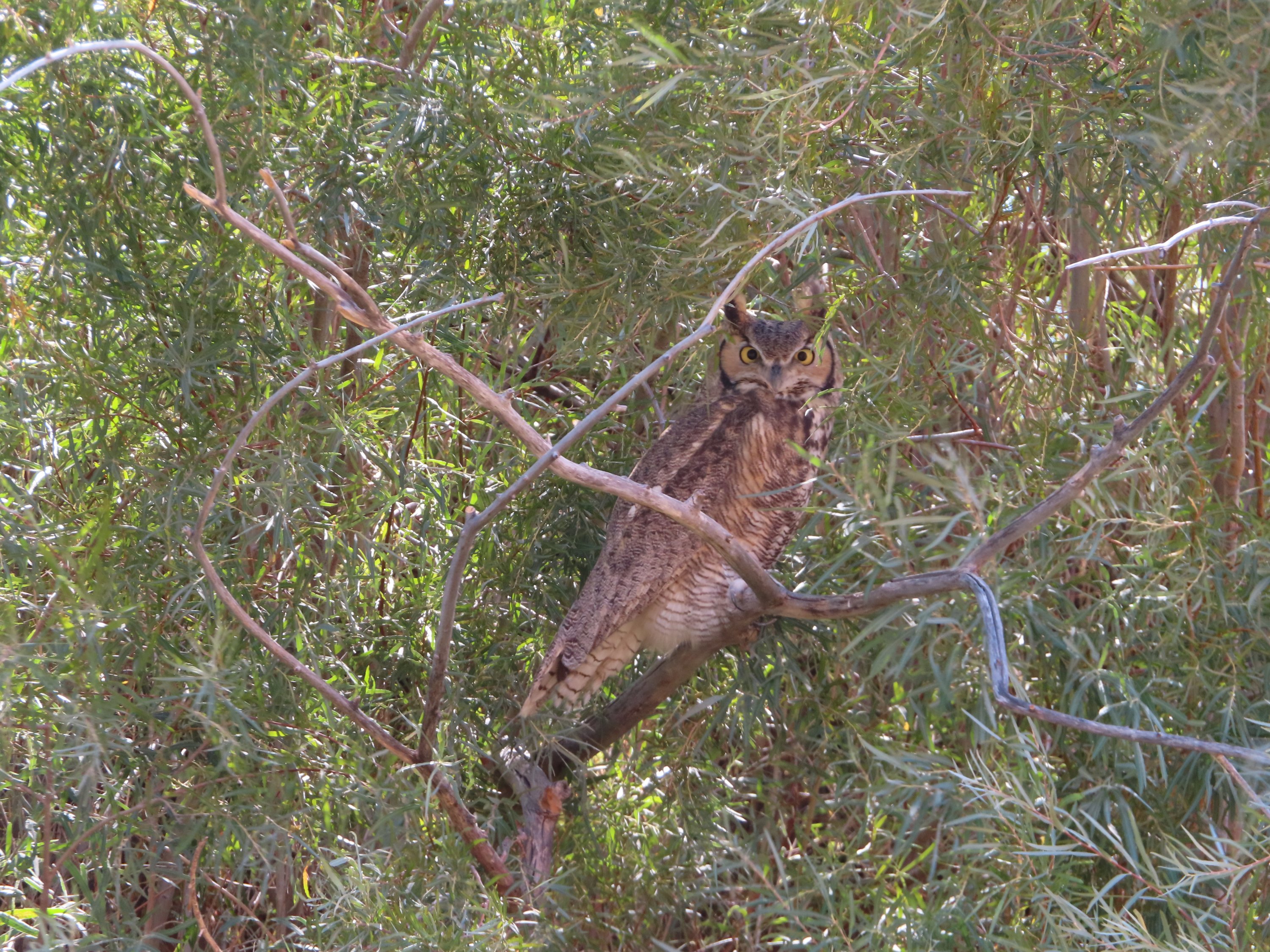 Wir sahen eine Eule mit durchdringenden gelben Augen, was sich anfühlte, als würde sie in unsere Seele schauen. Schwimmende Hirsche, die vor uns den Fluss überqueren, worüber wir so erstaunt waren, dass sie dazu überhaupt fähig sind. Ein „murder“ (Mord) von Krähen und damit der Frage, woher das Wort „Mord“ kommt, um eine Gruppe von Krähen zu definieren. Möglicherweise ein Falke mit gelben Umrandungen der Augen hoch oben in einer Felswand. Eine massive und viele winzige Eidechsen. Mehrere große blaue Reiher.