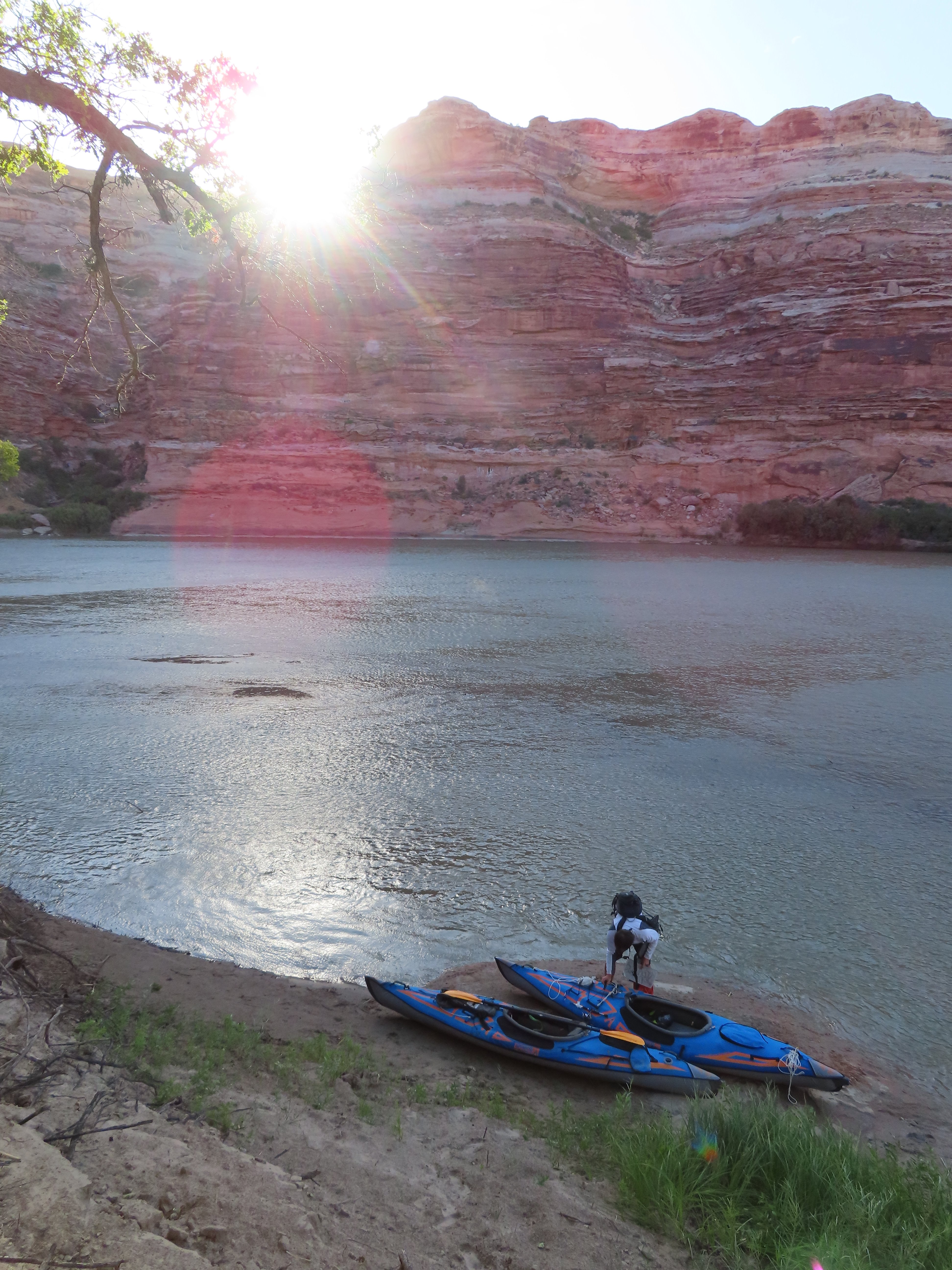 We, Dan and I, had been looking for an adventure. And what an adventure we had. Paddling down the Green River. 68 miles from Green River Town to Mineral Bottom. With all the components an adventure should have: seven days of wilderness, grand nature and stellar views, exploring the sights along the river, pondering alien conspiracy theories, sleeping under the stars, being lucky to find beautiful campsites, a connection to history, exciting encounters with wildlife, one night of thunder and lightning, two days of powerful winds with upstream waves, but apart from that perfect weather, hours of floating through stunning landscapes as well as hours of strenuous paddling against the wind and through serious waves, a scary moment (aka The Splash), some lessons learnt, an epic ride out of the canyon on a 1973 Yamaha…but most of all just the best of times. Feeling lucky beyond words to experience such beauty, space, time and wilderness.