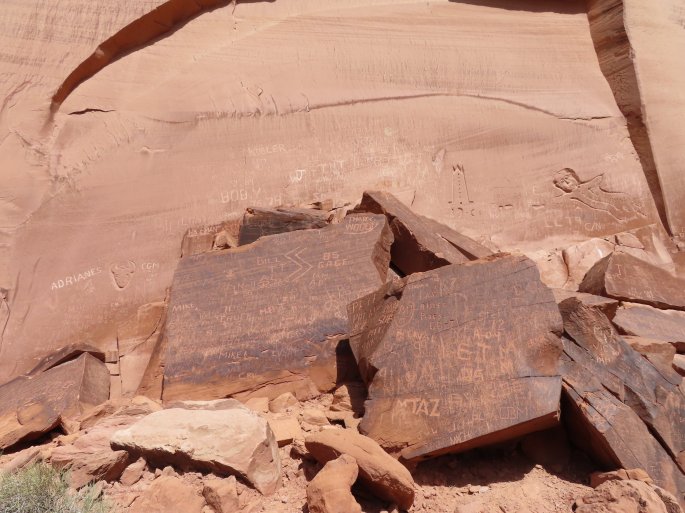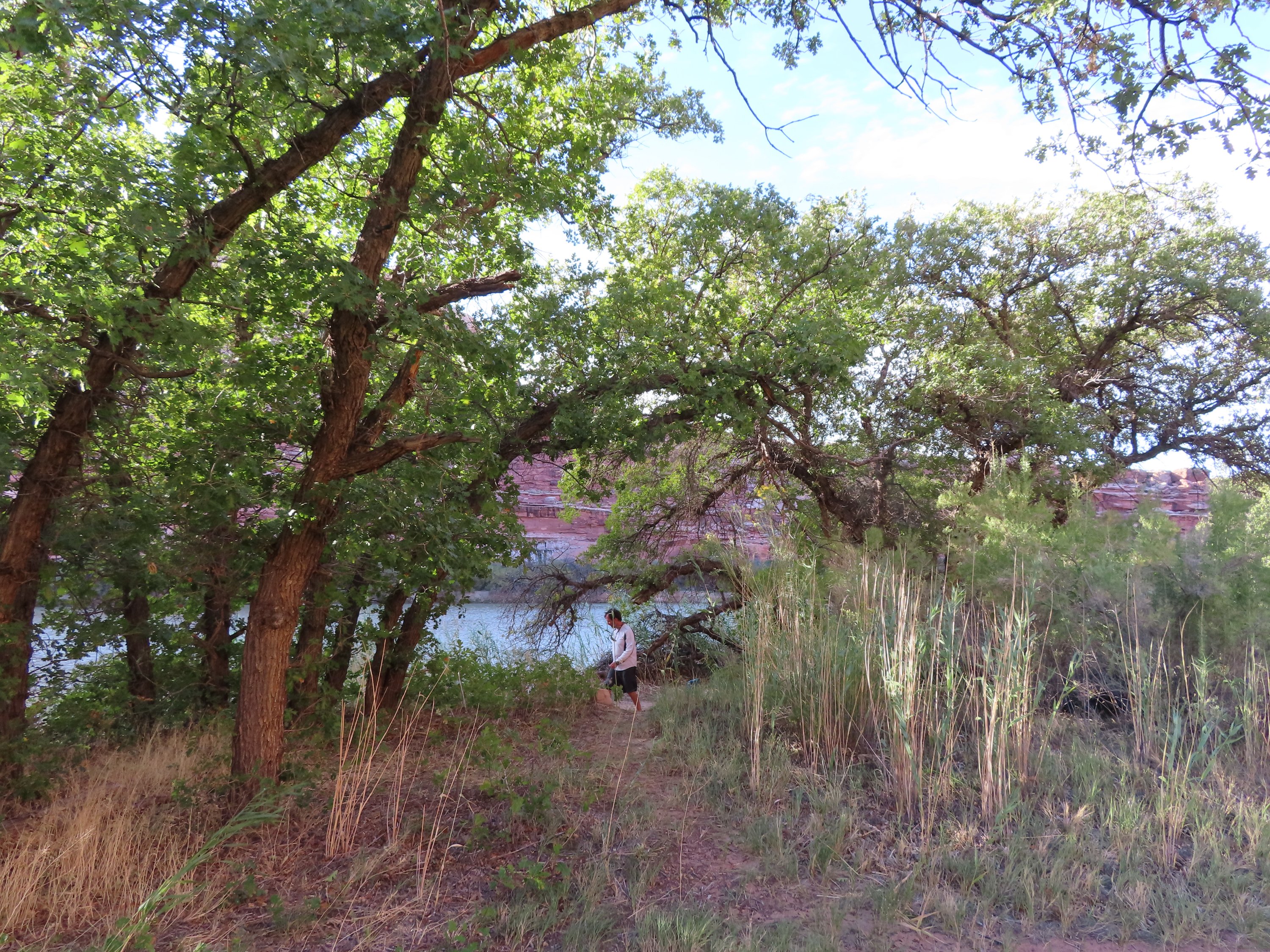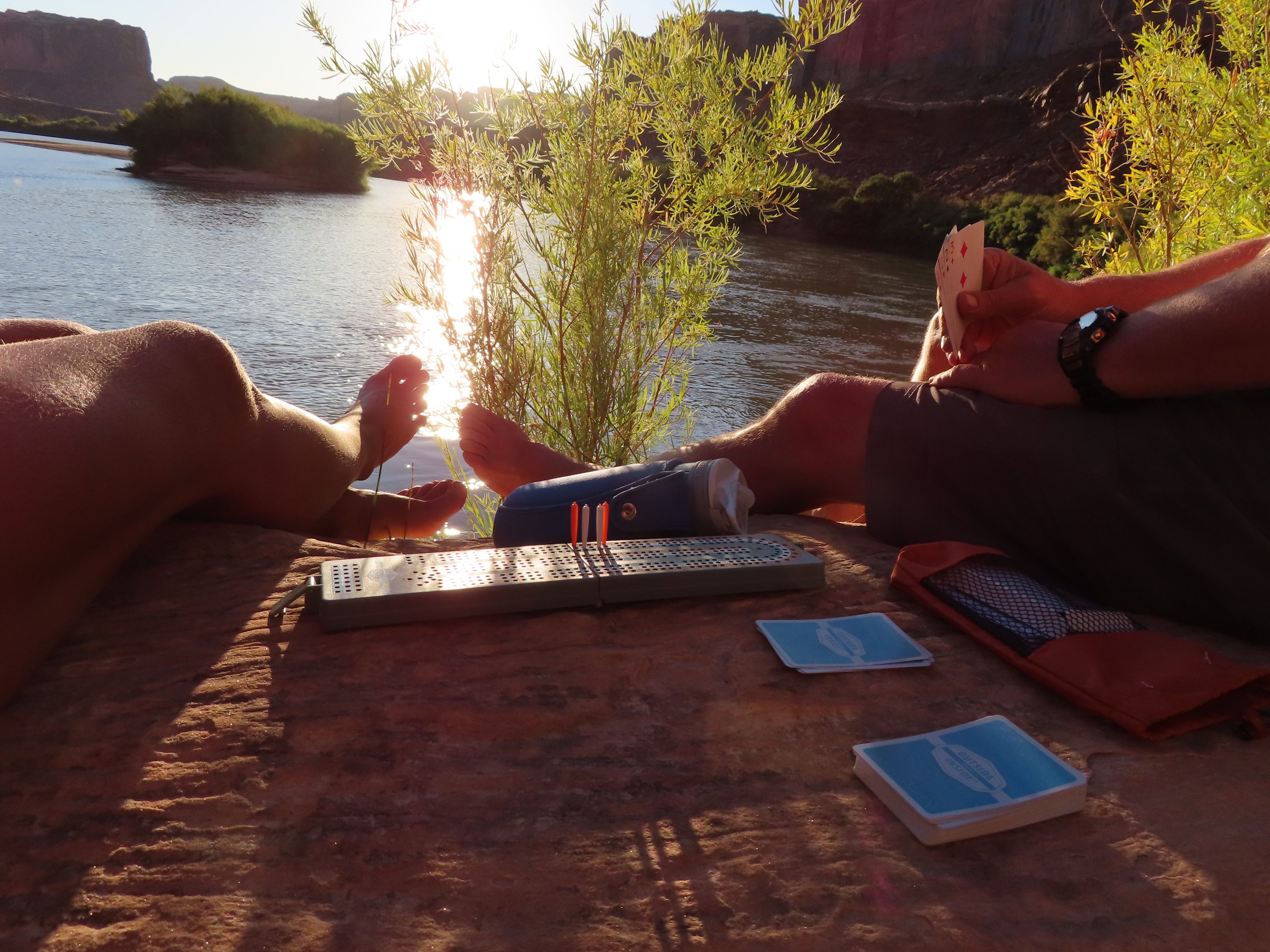 Wir fühlten uns extrem abenteuerlustig. Aber es ist nichts im Vergleich zu den Abenteuern, die dieser Canyon über Hunderte von Jahren erlebt hat. Wir folgten einem sehr interessanten und einzigartigen Green River Flussführer. In dem gab es nicht nur Informationen über den Fluss und die Campingplätze, sondern auch einige großartige Geschichten aus der Vergangenheit. Zum Beispiel über das Erbe der Pueblo, das anscheinend noch immer in Form von Ahnenfelsenkunst in den drei Schluchten zu sehen ist, die wir allerdings trotz einiger Klettereien aber leider nicht finden konnten. Die meisten Geschichten aber erzählten von den ersten Erkundungen und Siedlungen im 19. Jahrhundert, darunter erfolgreiche, aber auch gescheiterte Flussexpeditionen mit Holz- und sogar Dampfbooten. Es ist schwer vorstellbar, wie sie es mit der damals verfügbaren Ausrüstung gemacht haben. Eine der Geschichten war von zwei Männern, Flavel und Montez, die 1896 den Green River 1400 Meilen von Wyoming nach Arizona gepaddelt sind. Aus unbekannten Grund wurde das genaue Datum genannt an dem sie an einem der Höfe entlang des Flusses vorbeikamen, der 26. September 1896. Was genau das Datum war, an dem wir an diesem Hof 123 Jahre später vorbeipaddelten. Zu ihren Ehren nannten wir unsere Reise daher die Flavel-Montez-Jubiläums-Expedition.