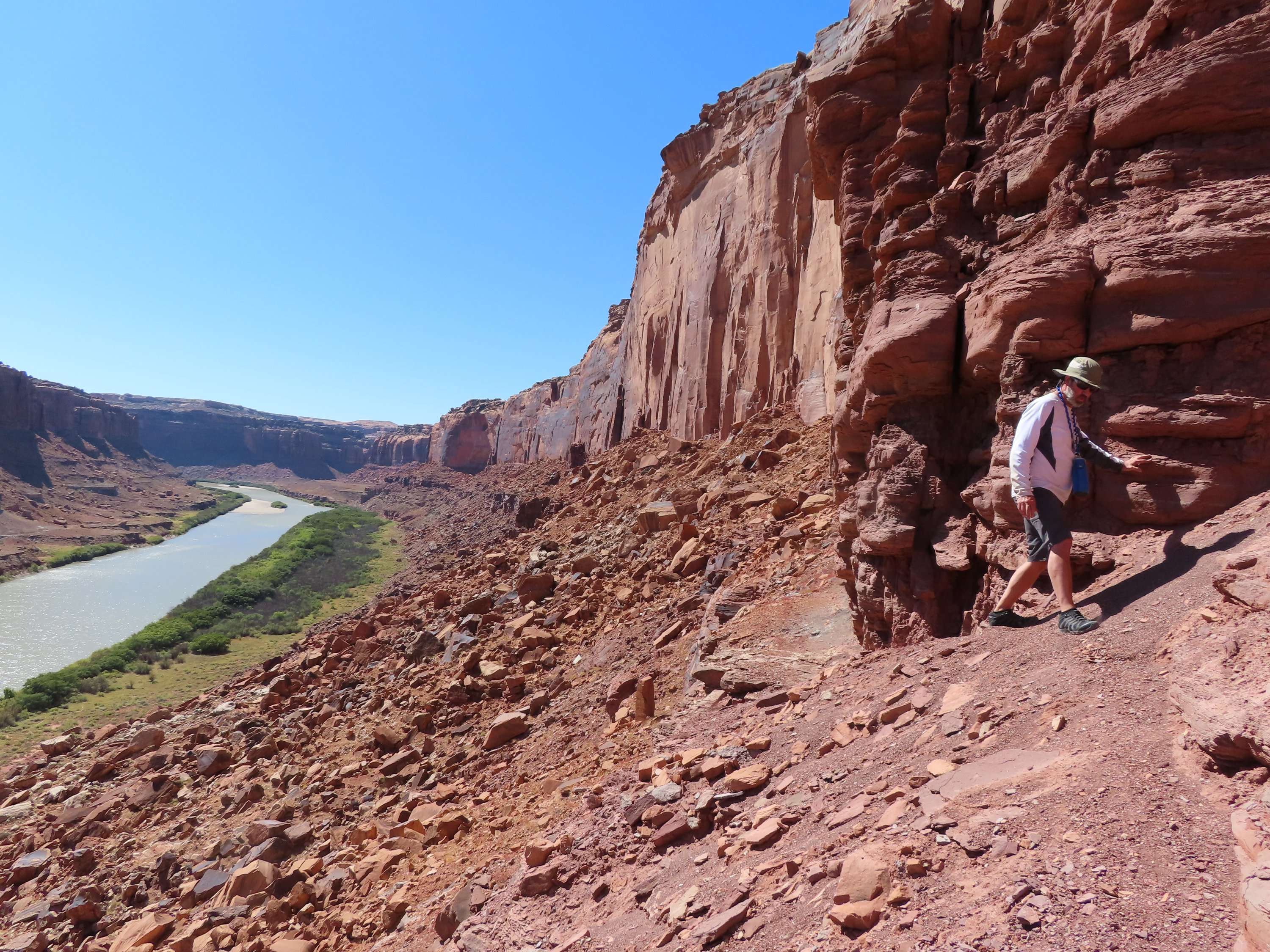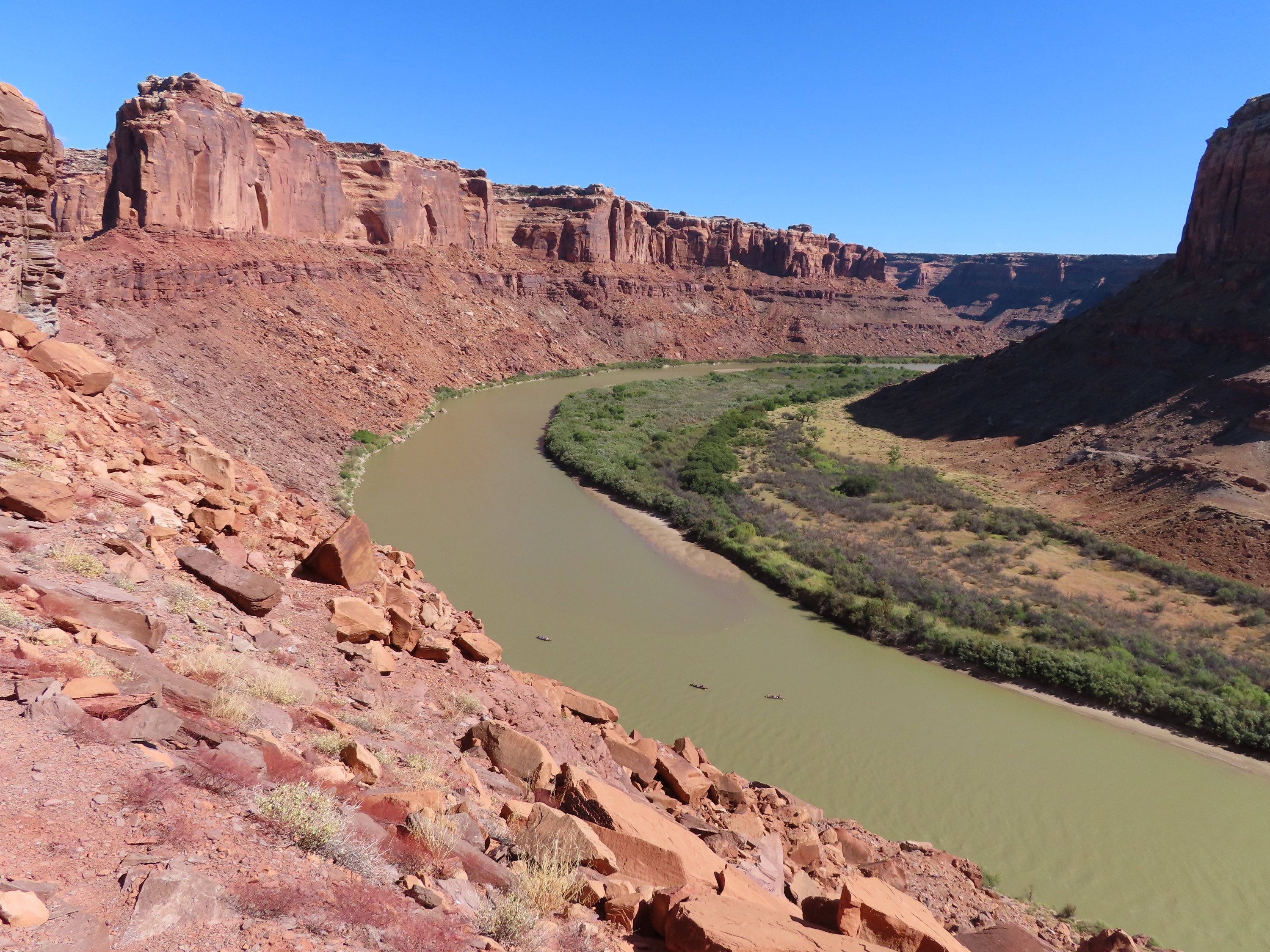 We felt extremely adventurous. But it is nothing compared to the adventures this canyon has experienced over hundreds of years. We followed a very interesting and unique Green River guidebook. Which not only provided us with information regarding the river and campsites but also added some great stories of the past. For example about the Publeoan heritage, apparently still visible in the form of ancestoral rock art in the Three Canyons that we wouldn’t find even despite some rock climbing. But most of the stories gave testament to the first explorations and settlements in the 19th century, including successful but also failed river expeditions with wooden and even steam boats. It is hard to imagine how they did it with the gear available at the time. One of the stories was of two guys, Flavel and Montez, who had paddled the Green River for 1400 miles from Wyoming to Arizona in 1896. A specific date was mentioned when they passed one of the farms along the river, September 26th 1896, which was exactly the date we passed that farm 123 years later. So in honour of them we named our trip the Flavel-Montez-Anniversary-Expidition.